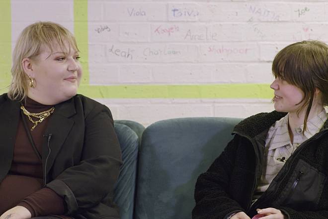 In einem Workshop, im November 2021, hießen die Teilnehmenden drei Gäste zum Interview auf der blauen Couch willkommen: