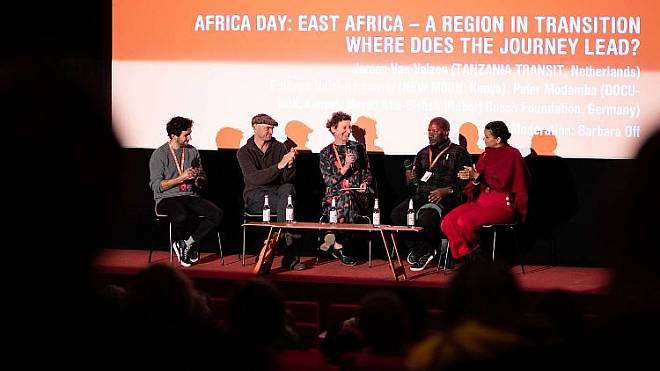 In einer Podiumsdiskussion in Zusammenarbeit mit STEPS, der DW Akademie, dem Bundesministerium für wirtschaftliche Zusammenarbeit und Entwicklung (BMZ) und ARTE kamen wir in einen direkten Austausch mit den Filmemacher.innen. Thema war zum Einen ihre Sicht auf Migration: Was bedeutet der Perspektivwechsel vor allem für die junge Generation auf dem afrikanischen Kontinent? Kann der Dokumentarfilm politisch sein und zu einer Veränderung der Realität beitragen? Andererseits sprachen wir mit den Produzent.innen und Sendern über neue Modelle der Filmproduktion zwischen Afrika und Europa sprechen. Barbara Off
