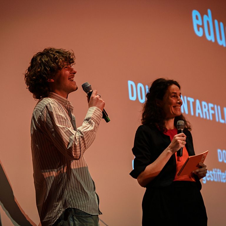 Auf die Nachwuchs-Filmemacher*innen warten Preise im Gesamtwert von 1.100 Euro. Moderiert von Maya Reichert, Leiterin des Bildungsbereichs DOK.education, blicken wir in kurzweiligen Filmgesprächen hinter die Kulissen des Dokumentarfilmschaffens. Wir präsentieren die preisgekrönten Filme auf großer Leinwand im Kino der Hochschule für Fernsehen und Film. Im Anschluss laden wir zum kleinen Umtrunk und Austausch im Foyer der Filmhochschule ein.