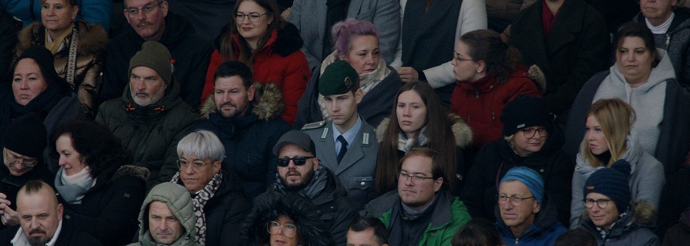 Ein Pharmaziestudent verpflichtet sich zu 17 Jahren Militärdienst bei der Bundeswehr: Im Gleichschritt marschieren, stillstehen, salutieren. Einer fällt um, der andere schmeißt hin. Der Alltag in der Kaserne und auf dem Übungsplatz konfrontiert den 18-Jährigen und seine Kamerad*innen mit harten Realitäten und stellt sie auf die Probe für das anstehende Gelöbnis.