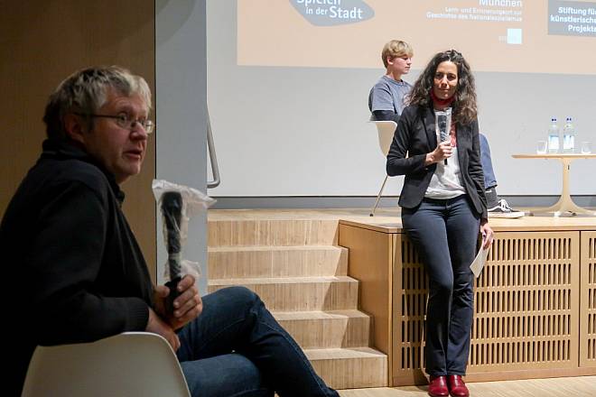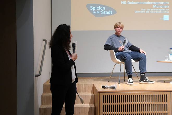 Im anschließenden Fachgespräch haben die Teilnehmer.innen die Möglichkeit, mit den Jugendlichen und den Macher.innen des Projekts, sowie mit den begleitenden Lehrkräften und dem Regisseur des Films über die Bedeutung einer künstlerischen Erinnerungsarbeit zu diskutieren.