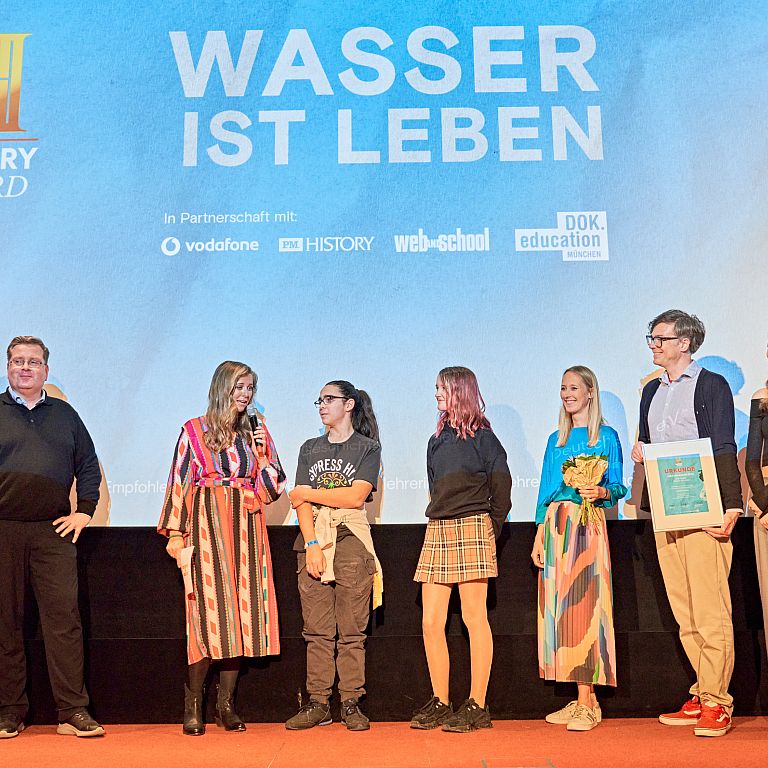 DOK.education lud herzlich ein zur Preisverleihung des HISTORY-AWARD 2023, ausgeschrieben zum Thema „Wasser ist Leben“, die von uns präsentiert wird. Der TV-Sender HISTORY Channel rückt zusammen mit seinen Partnern eines der wichtigsten gesellschaftlichen Themen in den Fokus: die Ressource Wasser in Geschichte, Gegenwart und Zukunft.