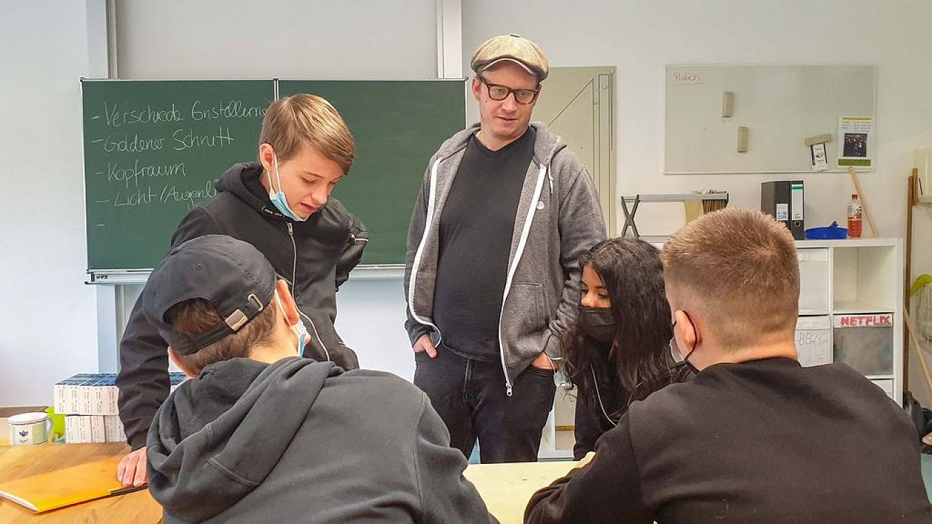 Ich bin großer Fan davon, für Projekte und auch AGs Profis in die Schule zu holen. Expert*innen finden ganz andere Zugänge zu den Jugendlichen und haben vor allem einen Blick dafür, auf was es wirklich ankommt und wie man projektorientiert mit der Klasse arbeitet und trotzdem sicherstellen kann, dass am Ende ein tolles Ergebnis herauskommt. Die Filmexpertinnen vom Bildungsprogramm DOK.education kamen mit großer Aufgeschlossenheit zu uns und fanden ganz schnell einen Zugang zur Klasse. Sie haben es geschafft, filmisches Handwerk und Kunstverständnis einfach und klar zu vermitteln.