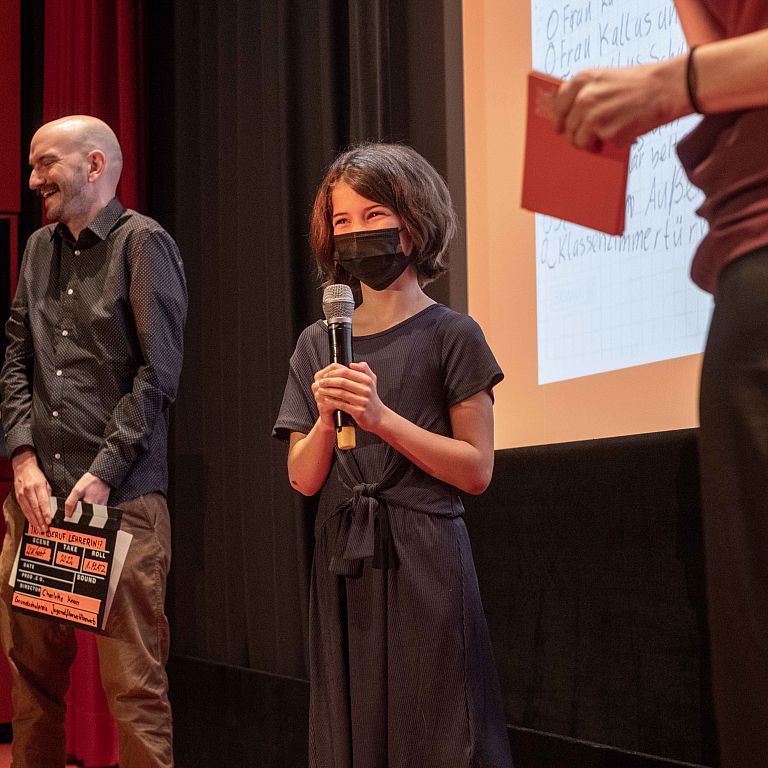 Impressionen der Preisverleihung des Dokumentarfilmwettbewerbs für junge Menschen 2022 in der HFF München findest du hier.