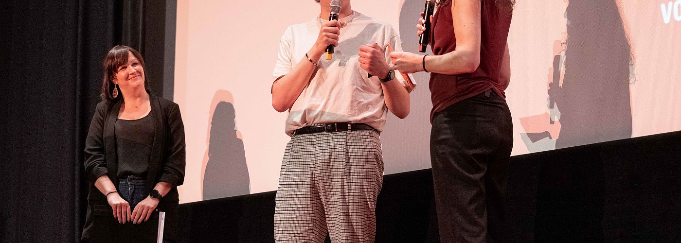 Impressionen der Preisverleihung des Dokumentarfilmwettbewerbs für junge Menschen 2022 in der HFF München findest du hier.