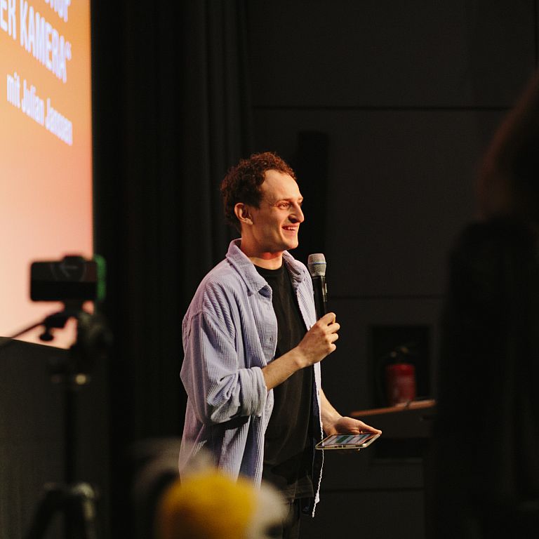 The workshop with presenter Julian Janssen will introduce you to the most important rules in front of the camera: how do you stay relaxed in front of the camera? What do you have to keep in mind when speaking into a microphone and how do you prepare well for a big show? Julian shares how he works for Checker Julian at KiKA and what you can learn from this for your own presentations. Bring your questions because at DOK.fest Munich you will meet the presenter in person!