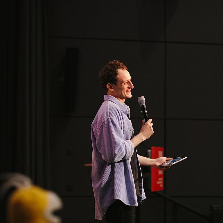 Der Workshop mit Moderator Julian Janssen führt dich ein in die wichtigsten Regeln vor der Kamera: Wie bleibt man locker vor der Kamera? Was muss man beim Sprechen in ein Mikro beachten und wie bereitet man sich gut für einen „großen Auftritt“ vor? Julian zeigt, wie er beim KiKA für Checker Julian vorgeht und was ihr davon für eure eigenen Moderationen lernen könnt. Bringt eure Fragen mit, denn beim DOK.fest München trefft ihr den Moderator persönlich!