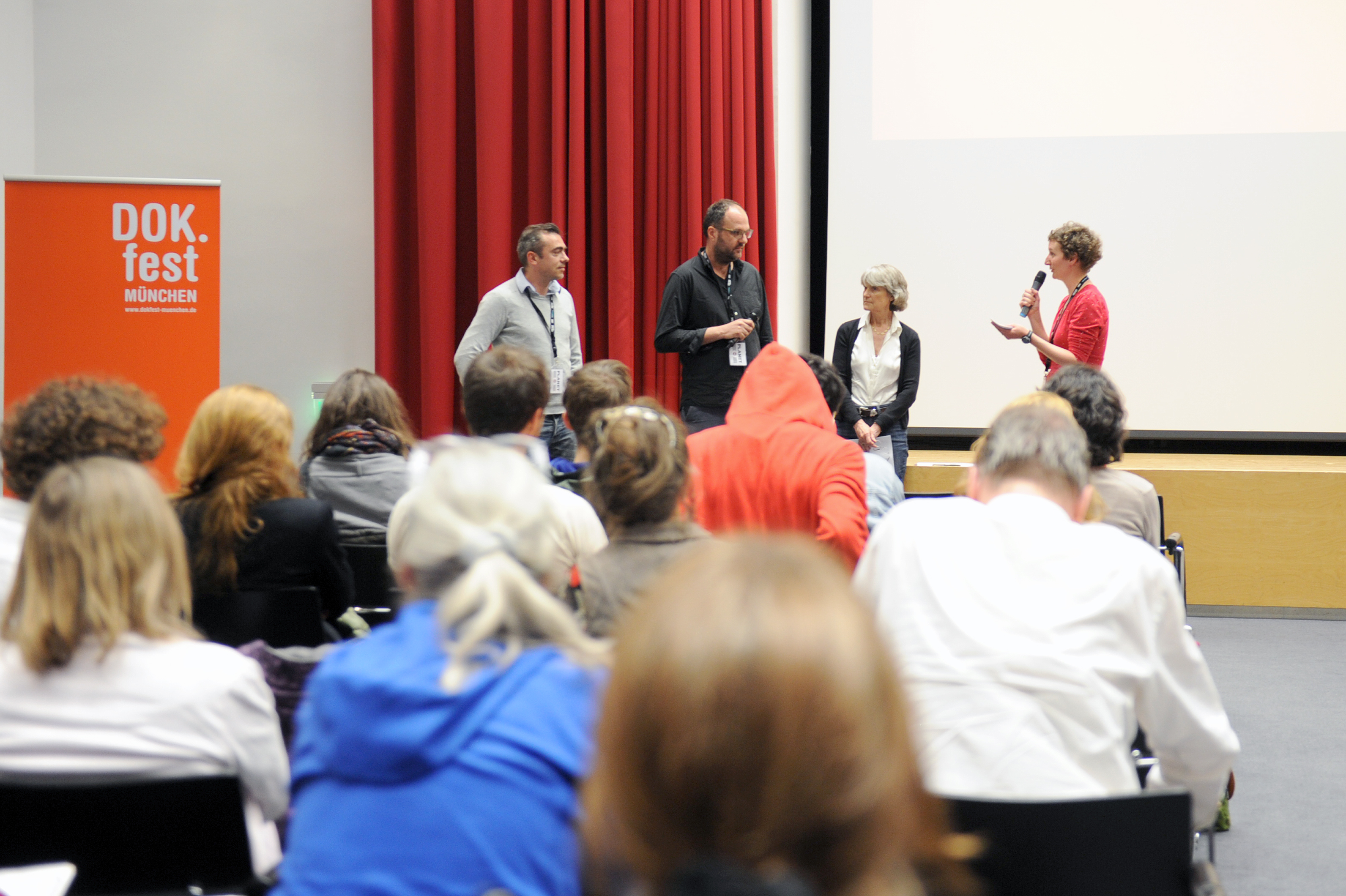 v.l.n.r.: Cutter David Jungmann (LA MORT DU DIEU SERPENT), Regisseur Damien Froidevaux (LA MORT DU DIEU SERPENT), Christine Zurmeyer (Institut Francais) und Moderatorin Barbara Off (DOK.network Africa) / Copyright DOK.fest - Maren Willkomm