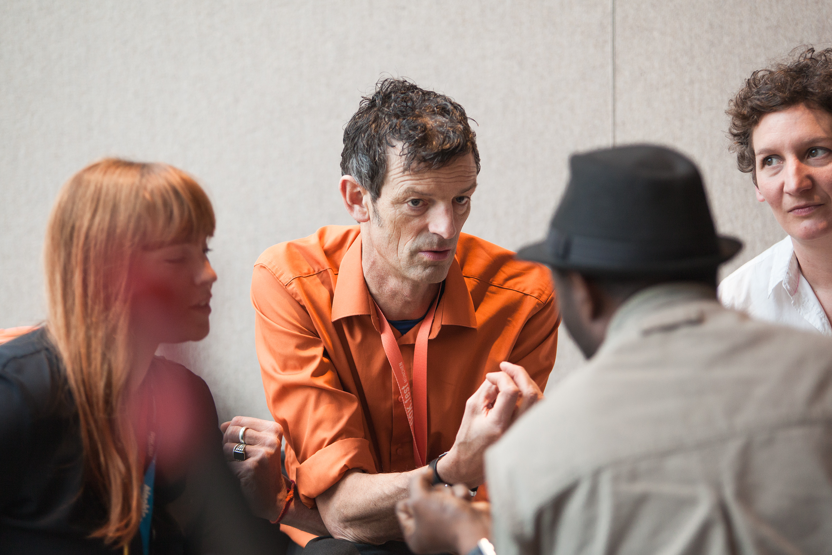 • Daniel Sponsel, Barbara Off (DOK.fest) im Gespräch mit Gästen des iREP / Copyright DOK.fest