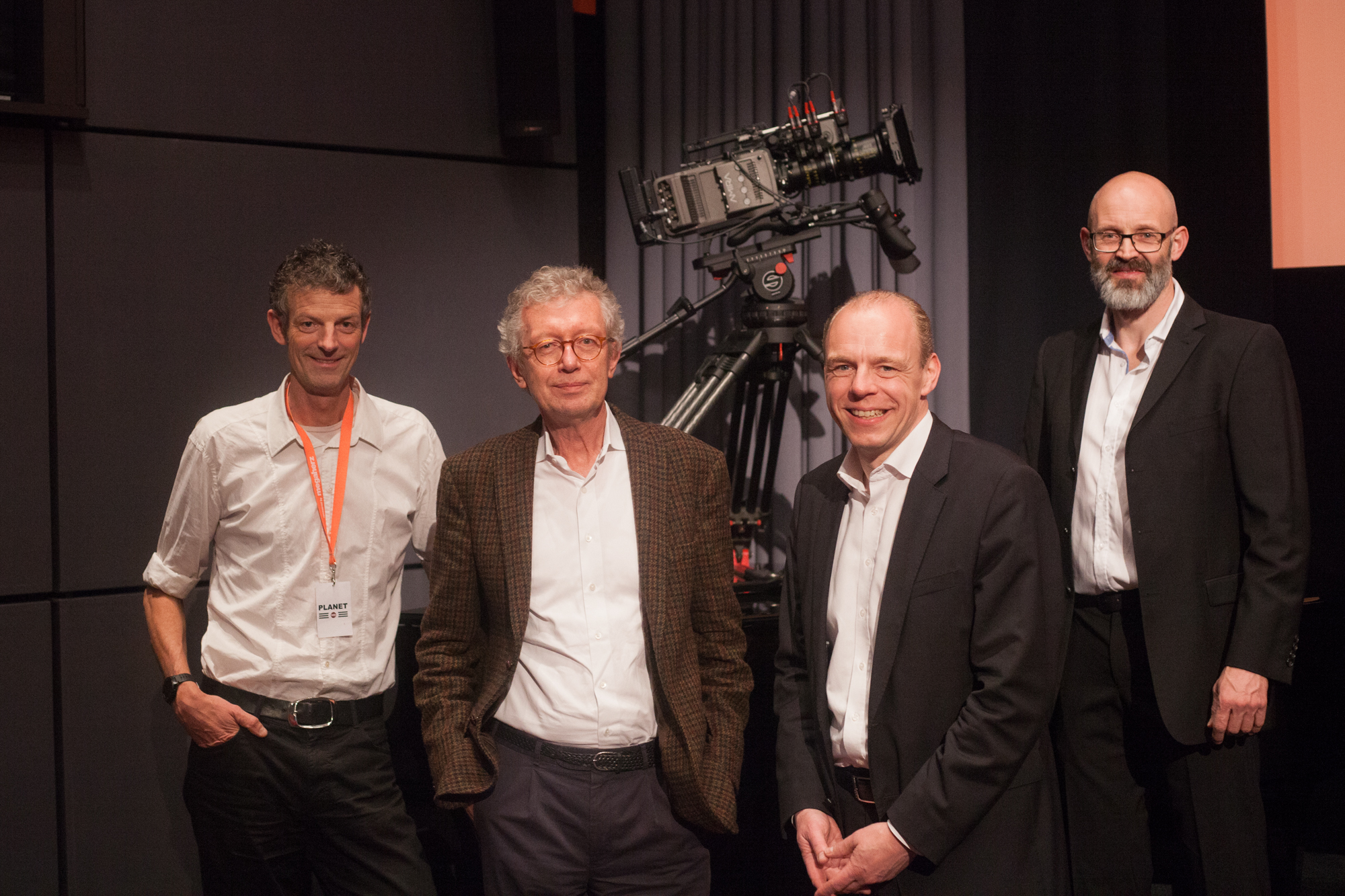 • Daniel Sponsel (Festivalleiter), Prof. Heiner Stadler (HFF München), Stephan Schenk (Managing Director of ARRI Cine Technik and General Manager of the Business Unit Camera Systems), Prof. Michael Leuthner (Macromedia Hochschule) / Copyright: DOK.fest München