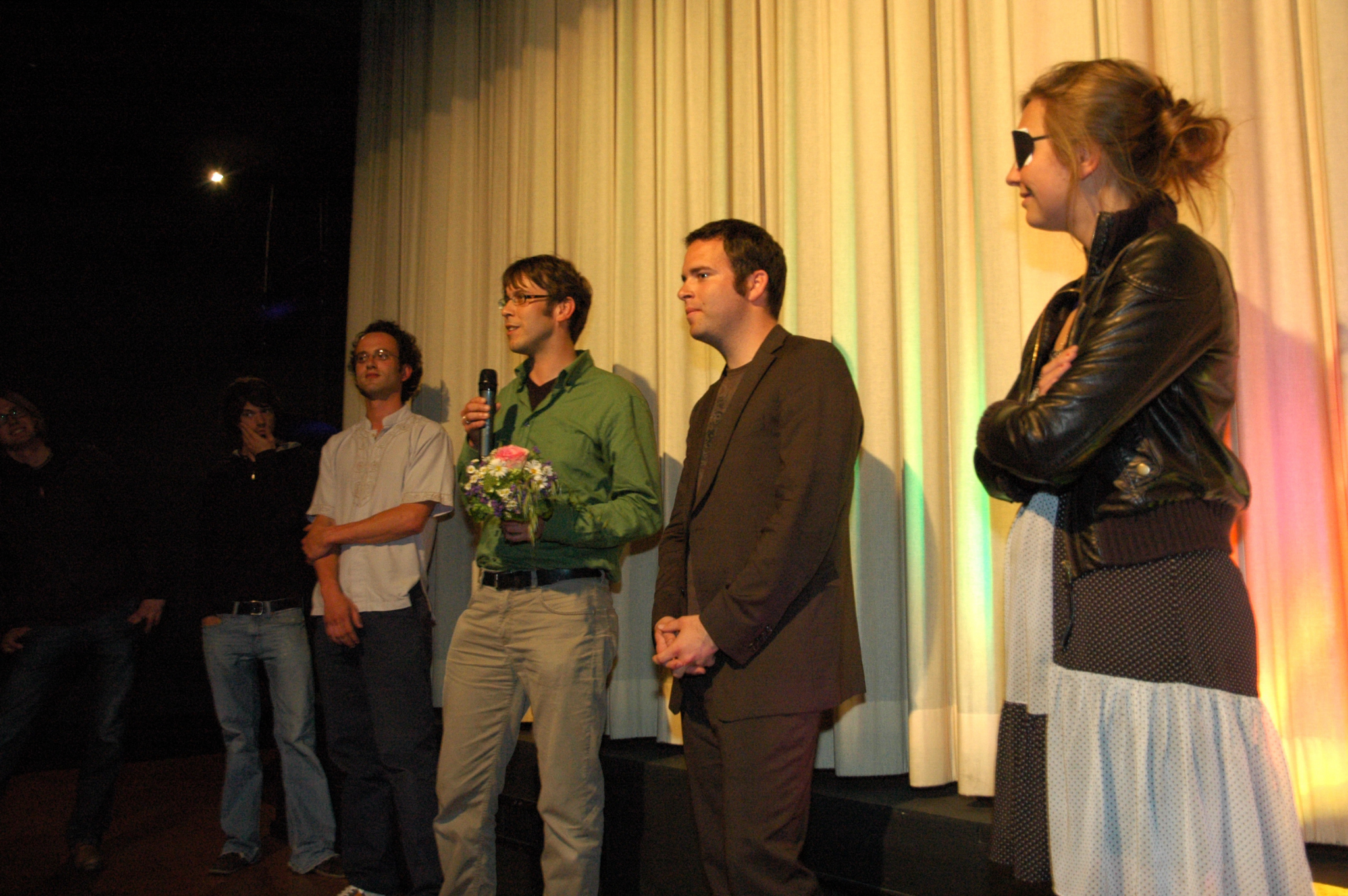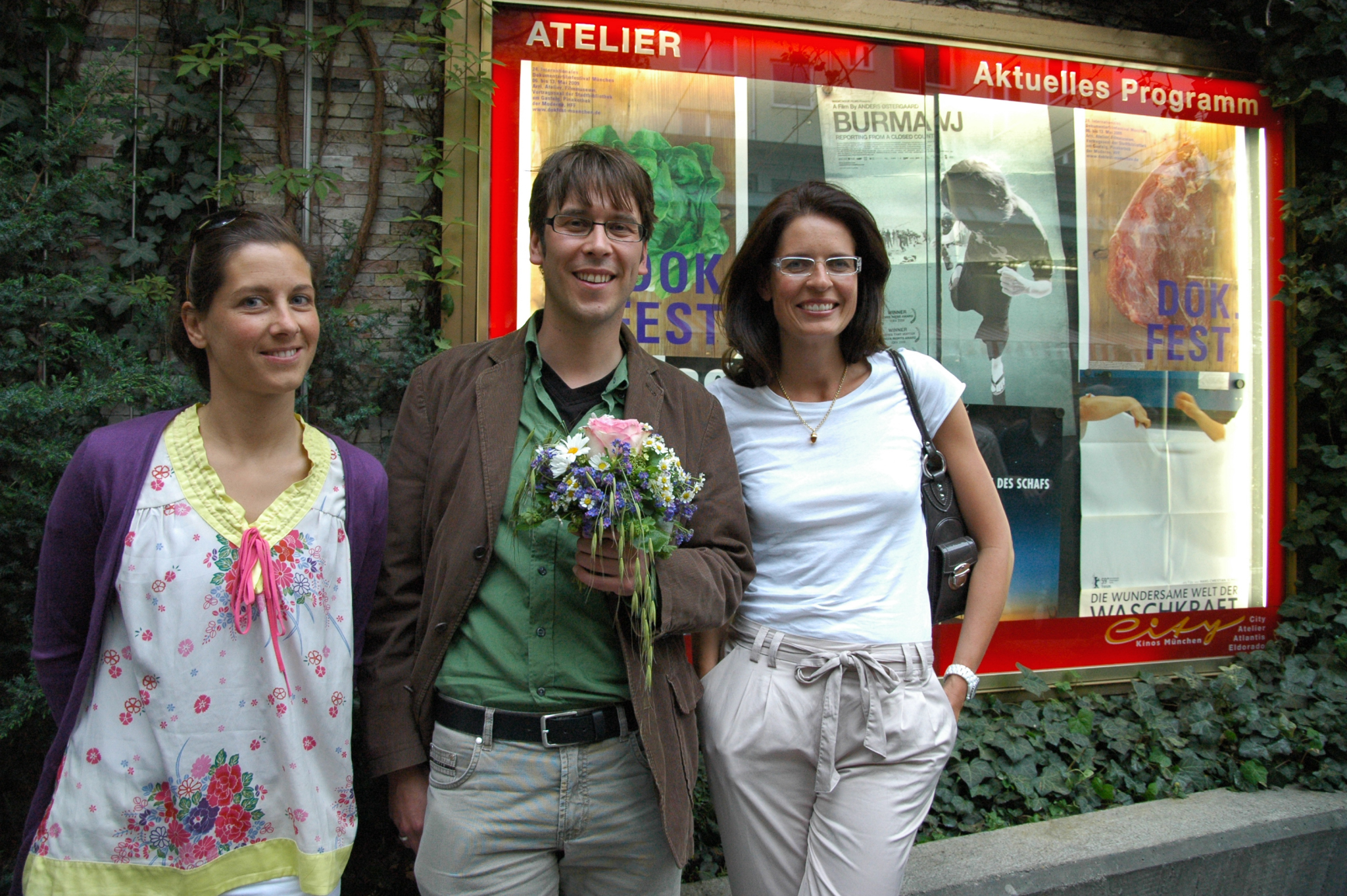 • Nach der Premiere (v.l.n.r.): Natalie Lambsdorff (BR, Film und Teleclub), Ralf Bücheler (Regisseur WENDEKREIS DES SCHAFS) und Sonja Scheider (BR, Film und Teleclub) / Copyright DOK.FEST - Maren Bornemann
