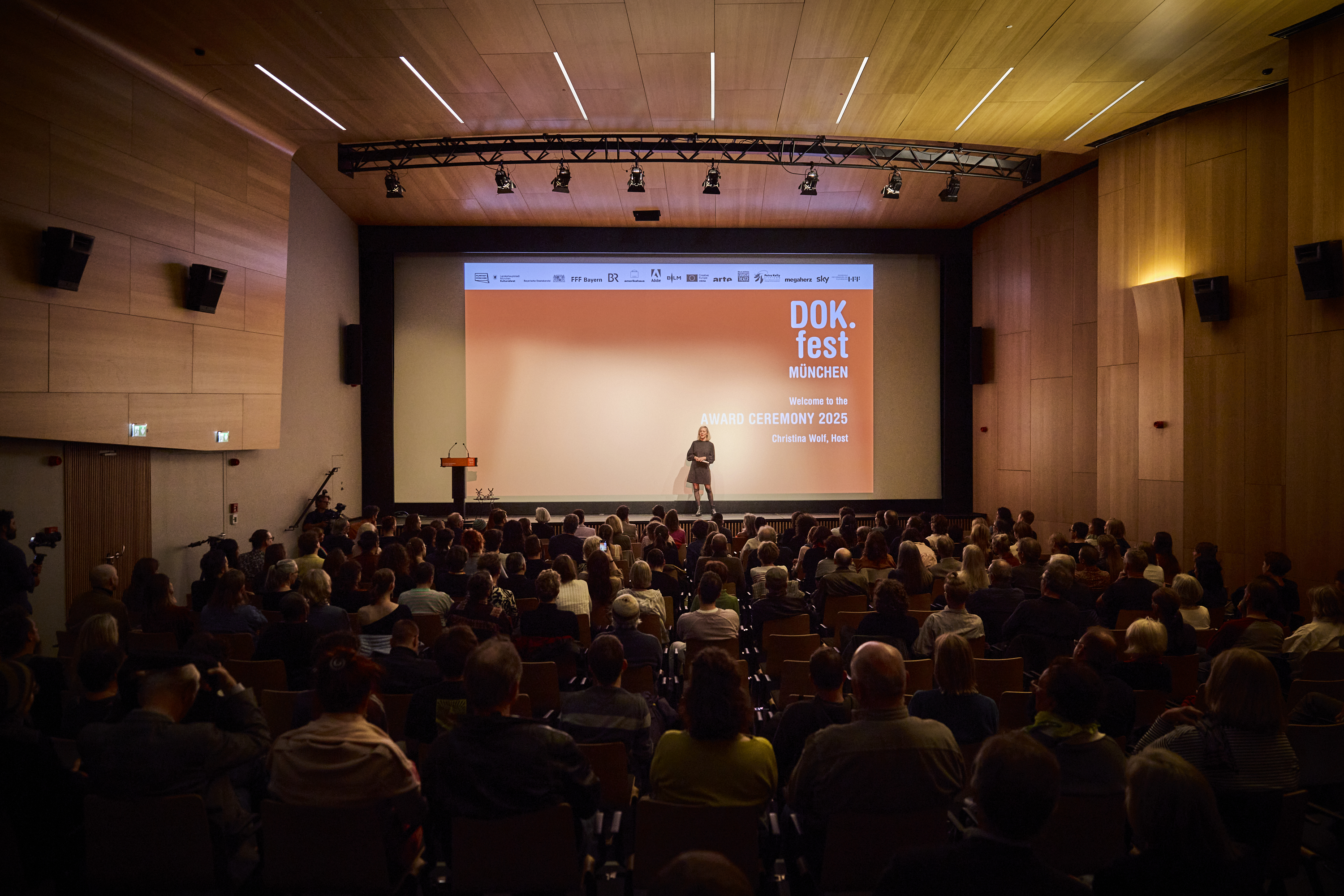 Moderatorin Christina Wolf bei der Hauptpreisverleihung (c) DOK.fest München 2025