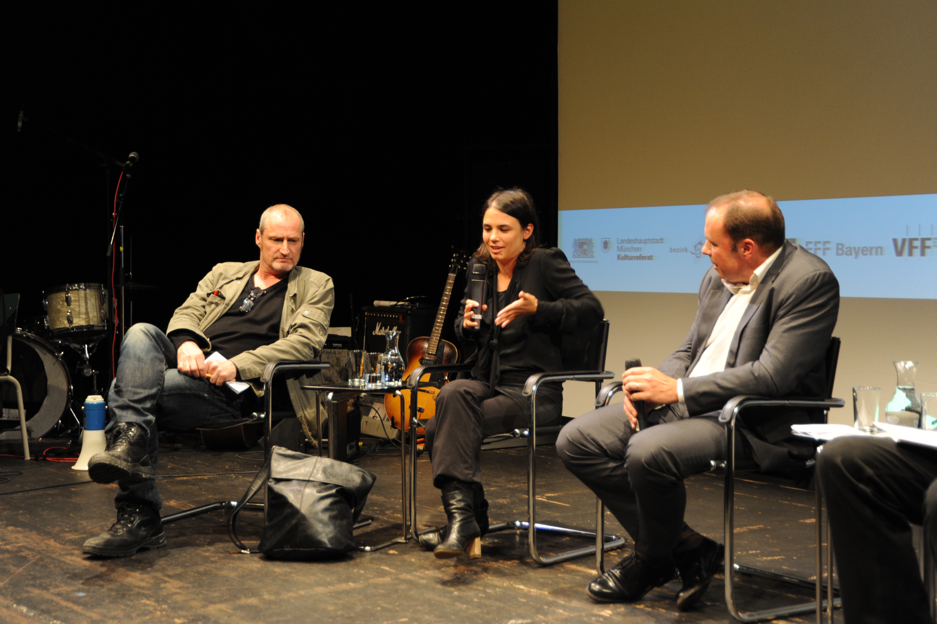 v.l.n.r.: Dramaturg Matthias Günther (Münchner Kammerspiele), Regisseurin Anja Salomonowitz (DIE 727 TAGE OHNE KARAMO) und Moderator Daniel Puntas Bernet / Copyright DOK.fest - Maren Willkomm