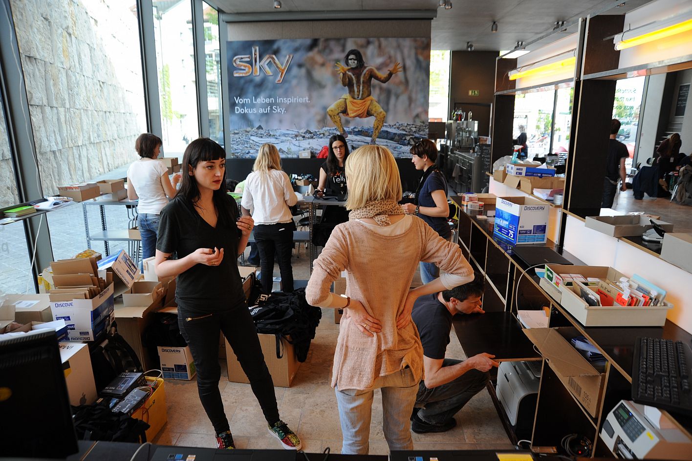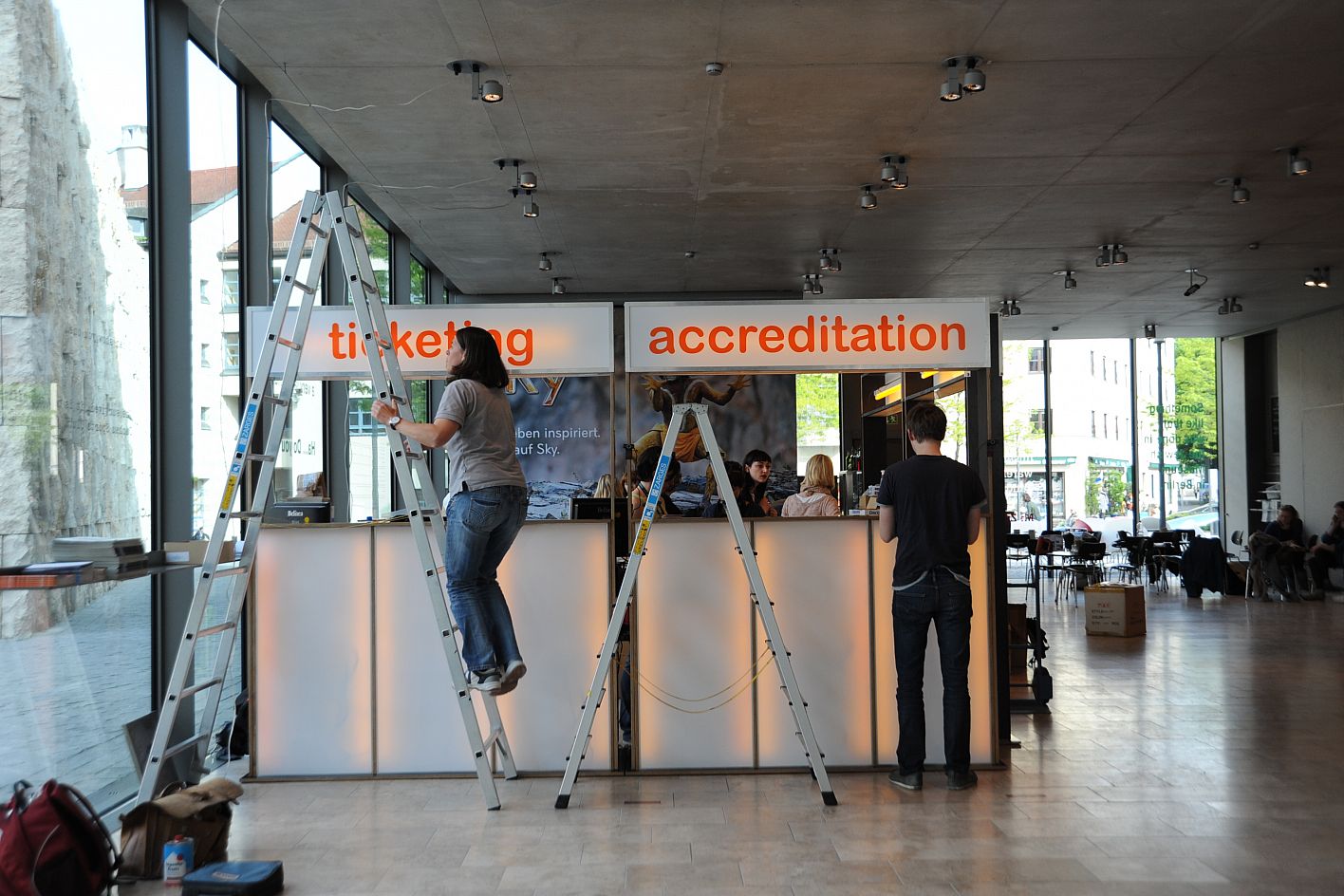 • Aufbau des Festivalzentrums im Foyer des Jüdischen Museums / Copyright DOK.fest - Maren Willkomm