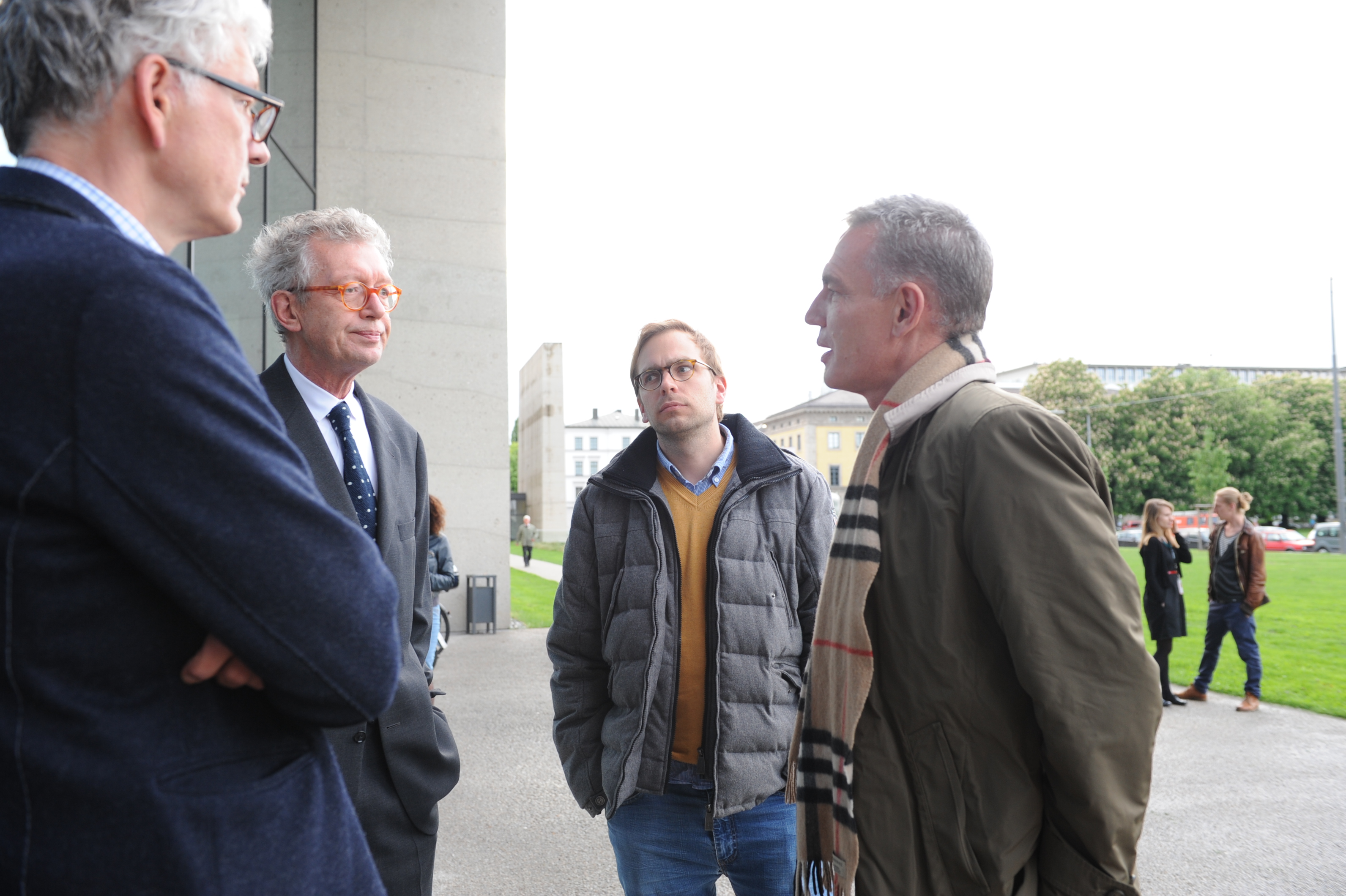 • v.l.n.r.: Michael Gutmann (HFF), Heiner Stadler (HFF), Tim Moeck (HFF) und Fidelis Mager (Megaherz) / Copyright DOK.fest - Maren Willkomm