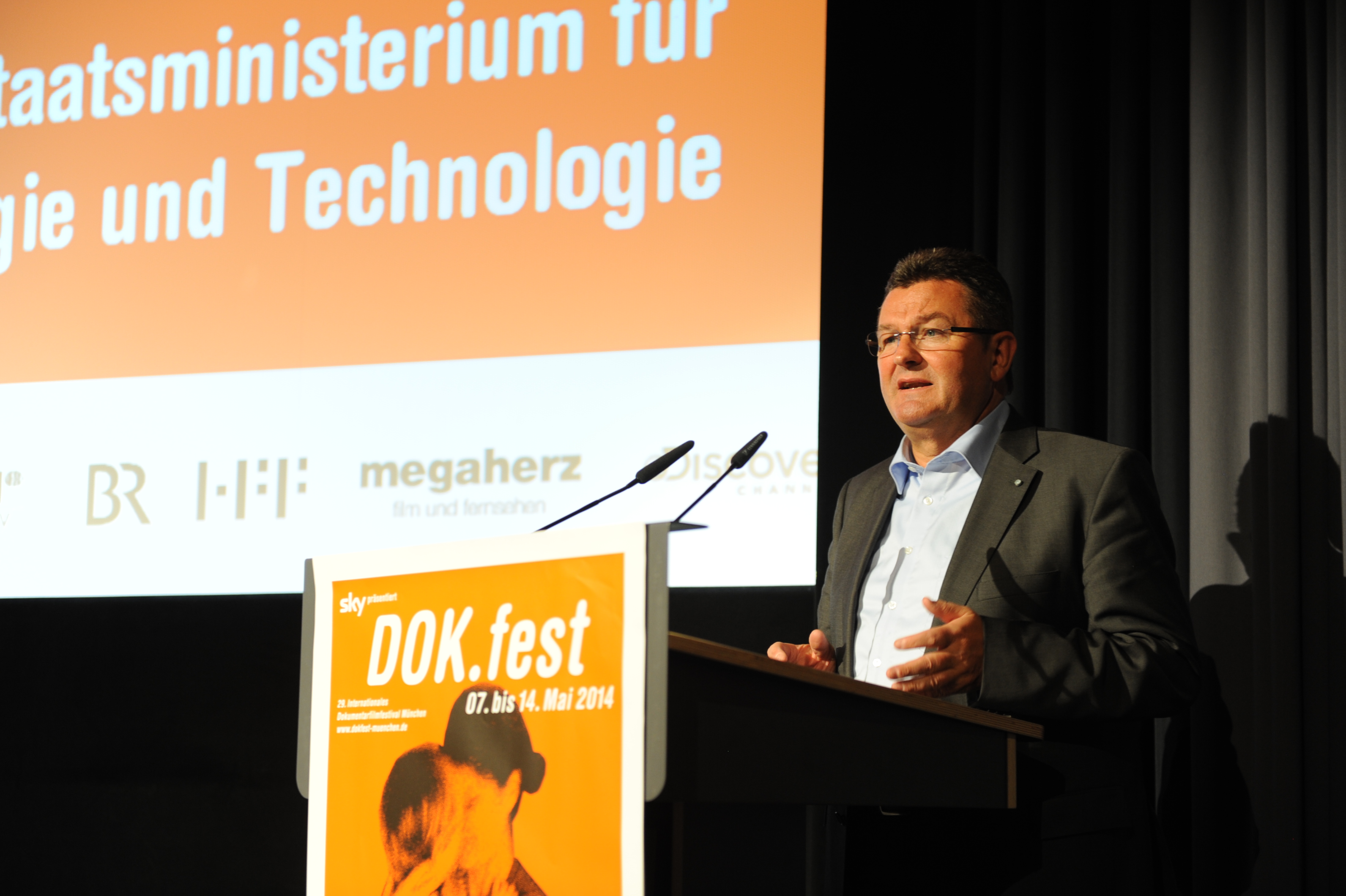 • Staatssekretär Franz Josef Pschierer bei der DOK.fest Eröffnung in der HFF / Copyright DOK.fest - Maren Willkomm