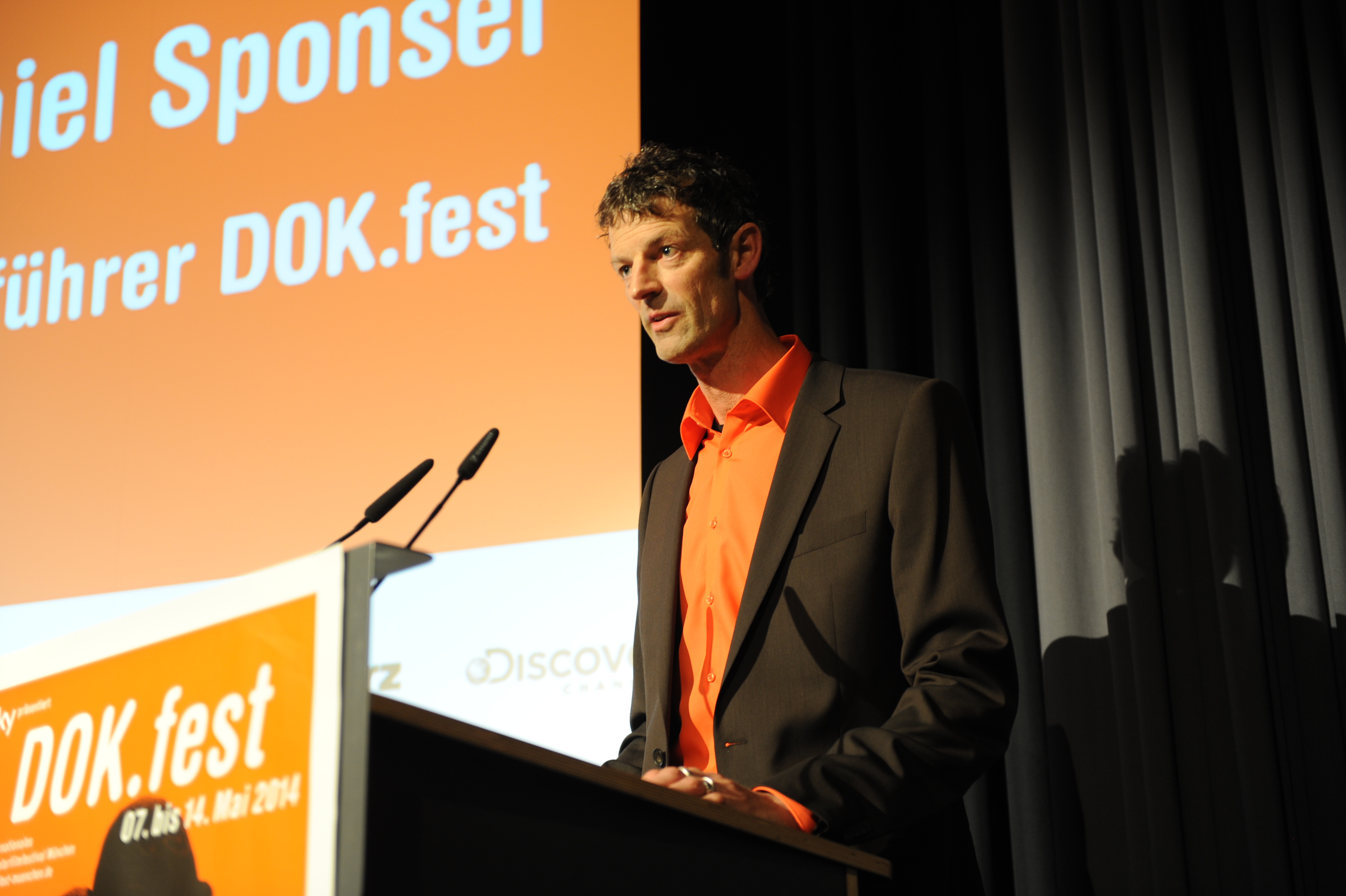 • Festivalleiter Daniel Sponsel bei der DOK.fest Eröffnung in der HFF / Copyright DOK.fest - Maren Willkomm