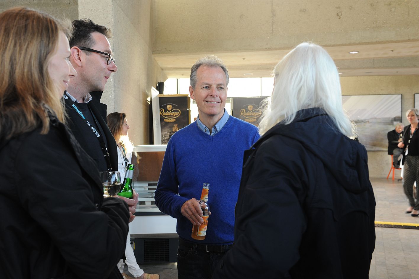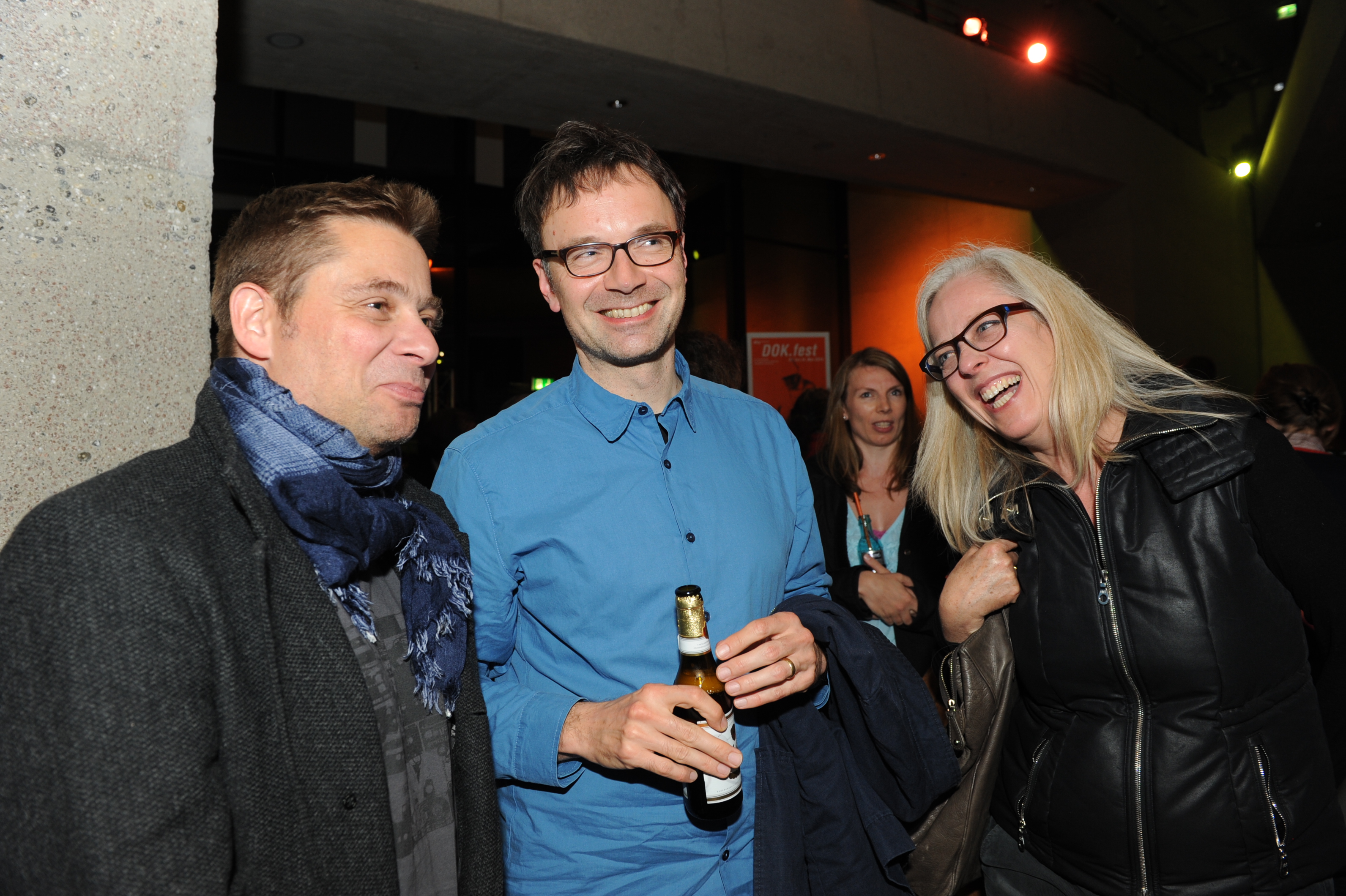• v.l.n.r.: Diana Iljine (Filmfest München), Michael Roppelt (Bayerische Staatsregierung), Thomas Sessner (BR) mit Begleitung / Copyright DOK.fest - Maren Willkomm