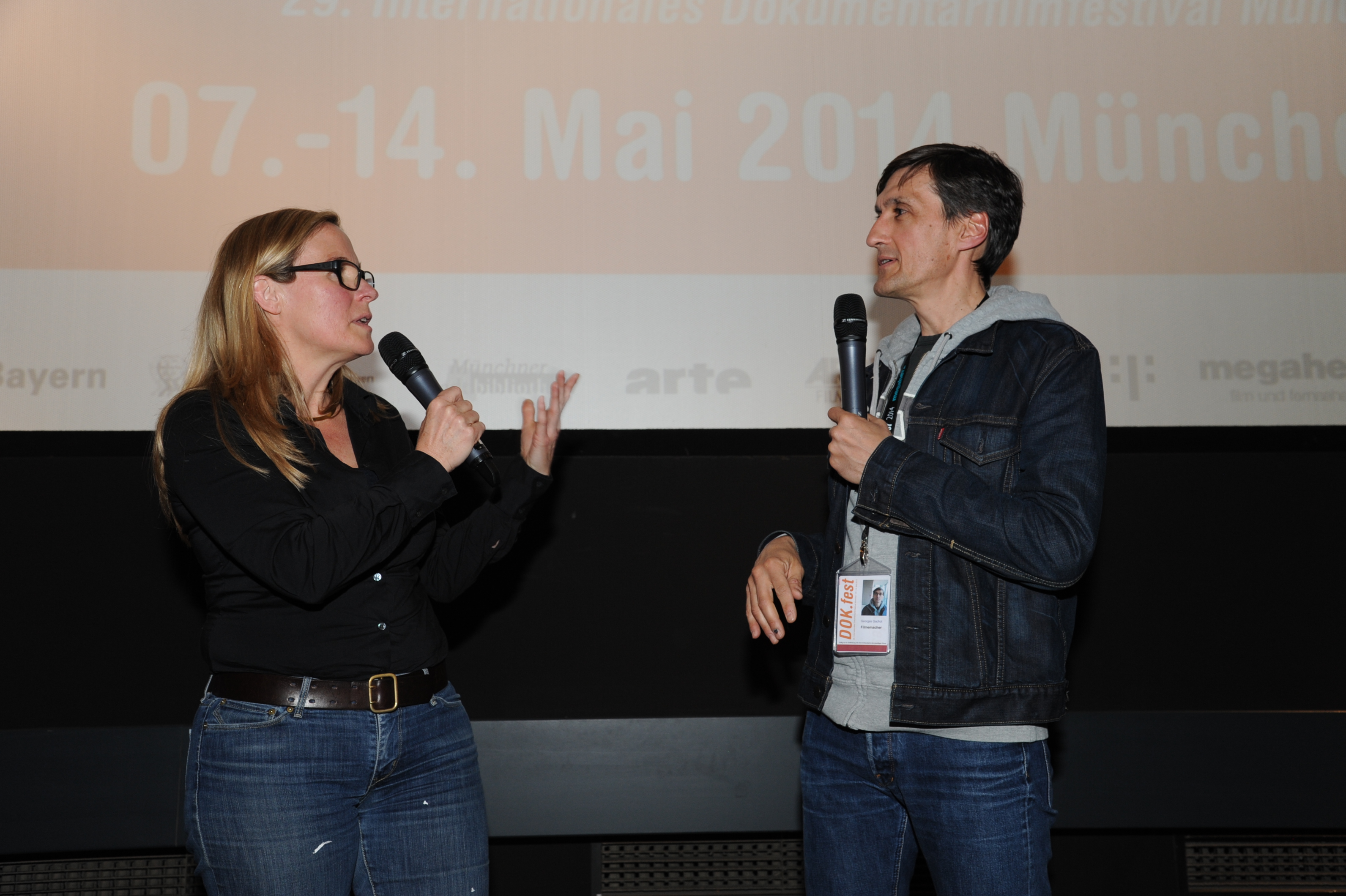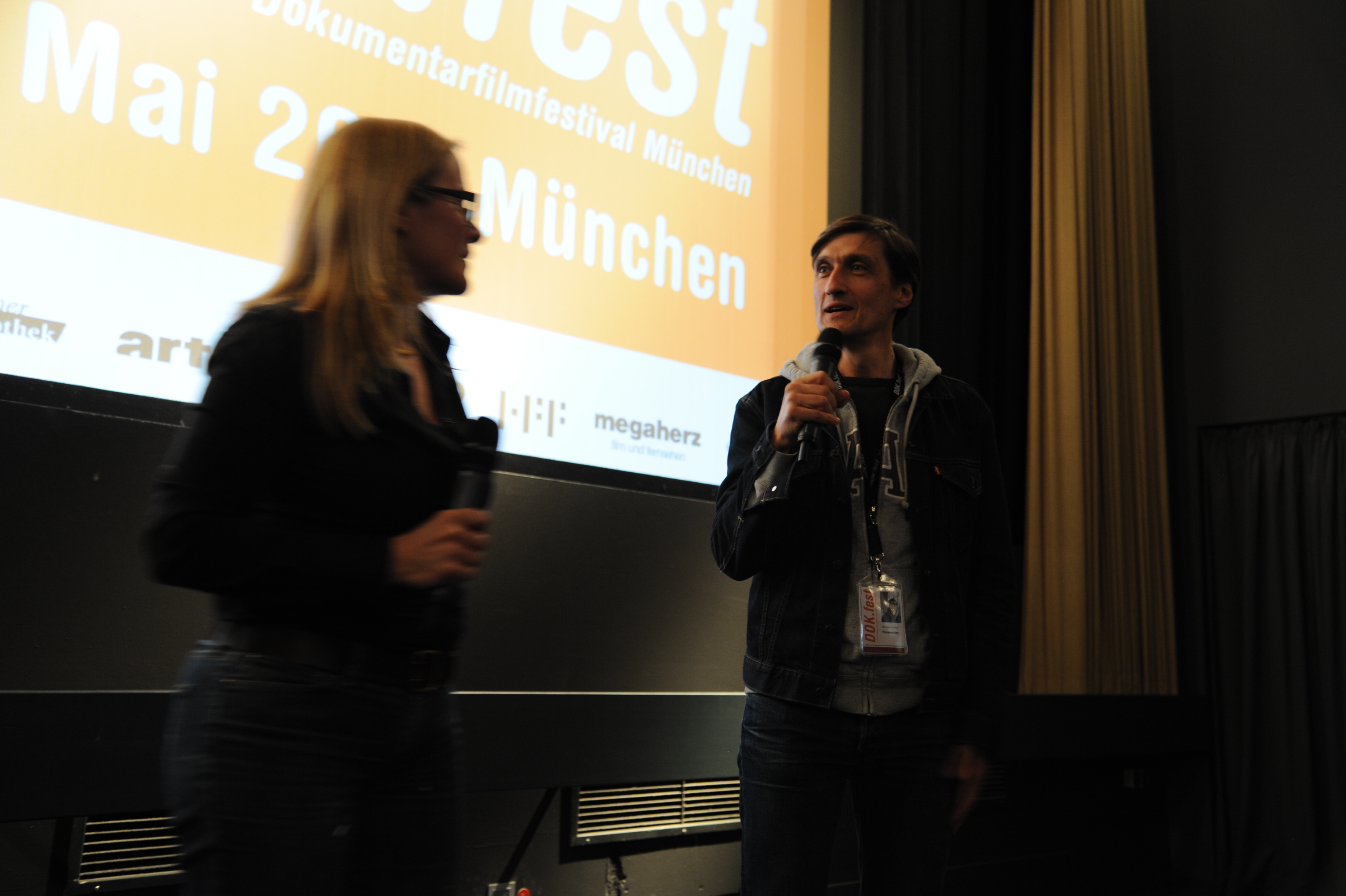 • Moderatorin Elena Alvarez (DOK.fest,li.) und Regisseur Georges Gachot (O SAMBA,re.) im Rio Kino / Copyright DOK.fest - Maren Willkomm