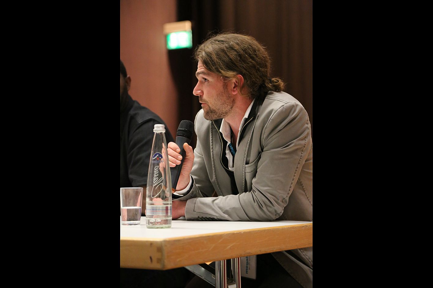 • Regisseur Gilbert Ndahayo (RWANDA: BEYOND THE DEADLY PIT) beim DOK.network Africa / Copyright DOK.fest - Maren Willkomm