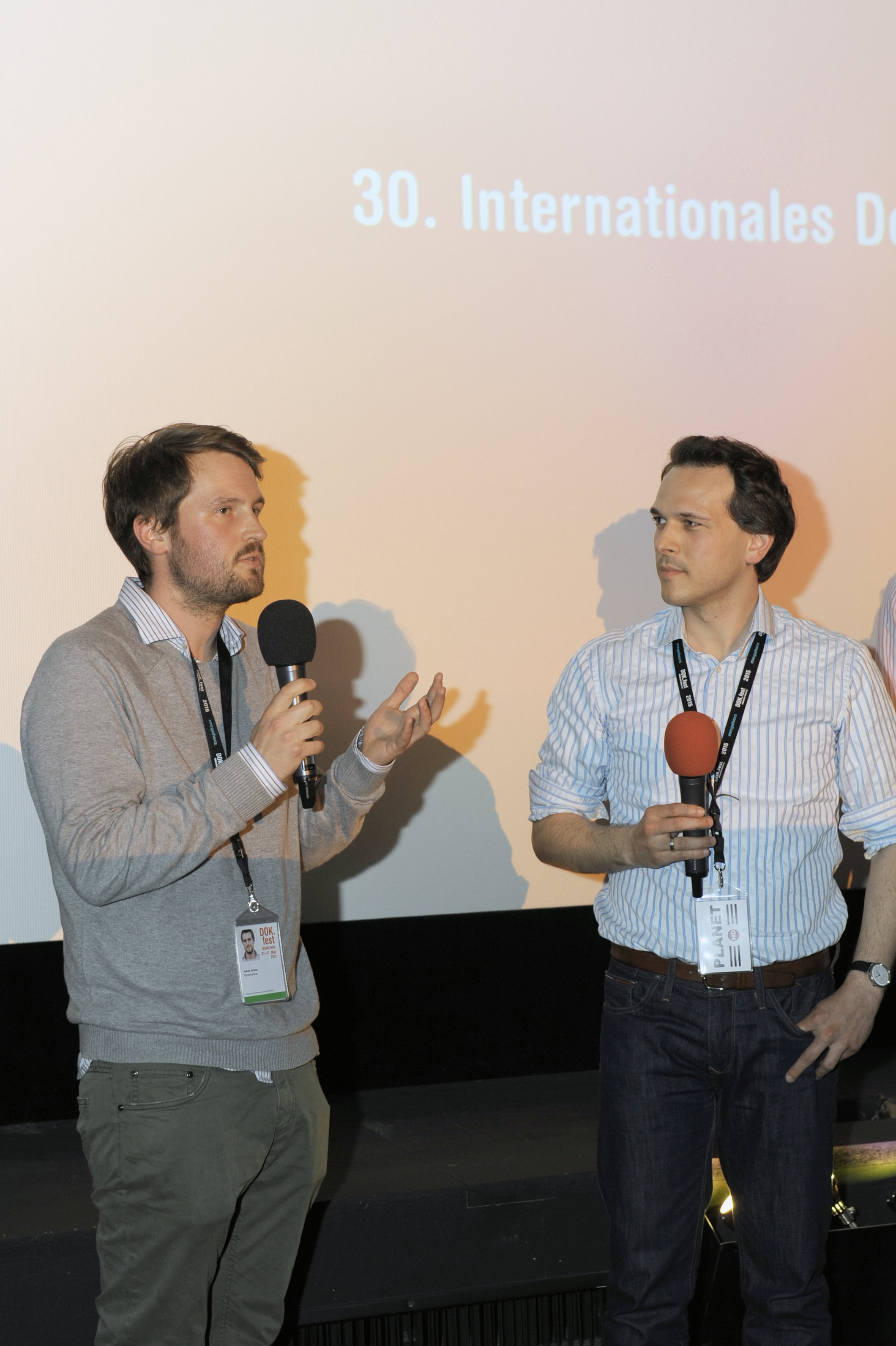 • Regisseur Jakob Gross (ABDO, li.) und Moderator Simon Hauck (DOK.fest, re.) / Copyright DOK.fest - Maren Willkomm