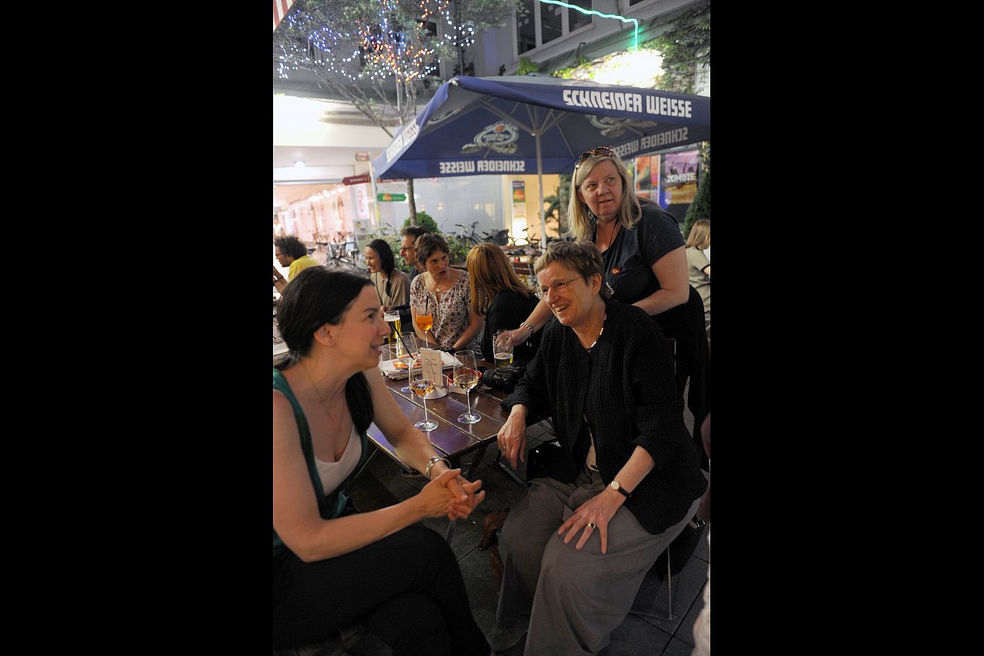 Regisseurin Agnieszka Zwiefka (THE QUEEN OF SILENCE, li.) mit Begleitung und Regisseurin Lou McLoughlan (16 YEARS TILL SUMMER,re.) / Copyright DOK.fest - Maren Willkomm