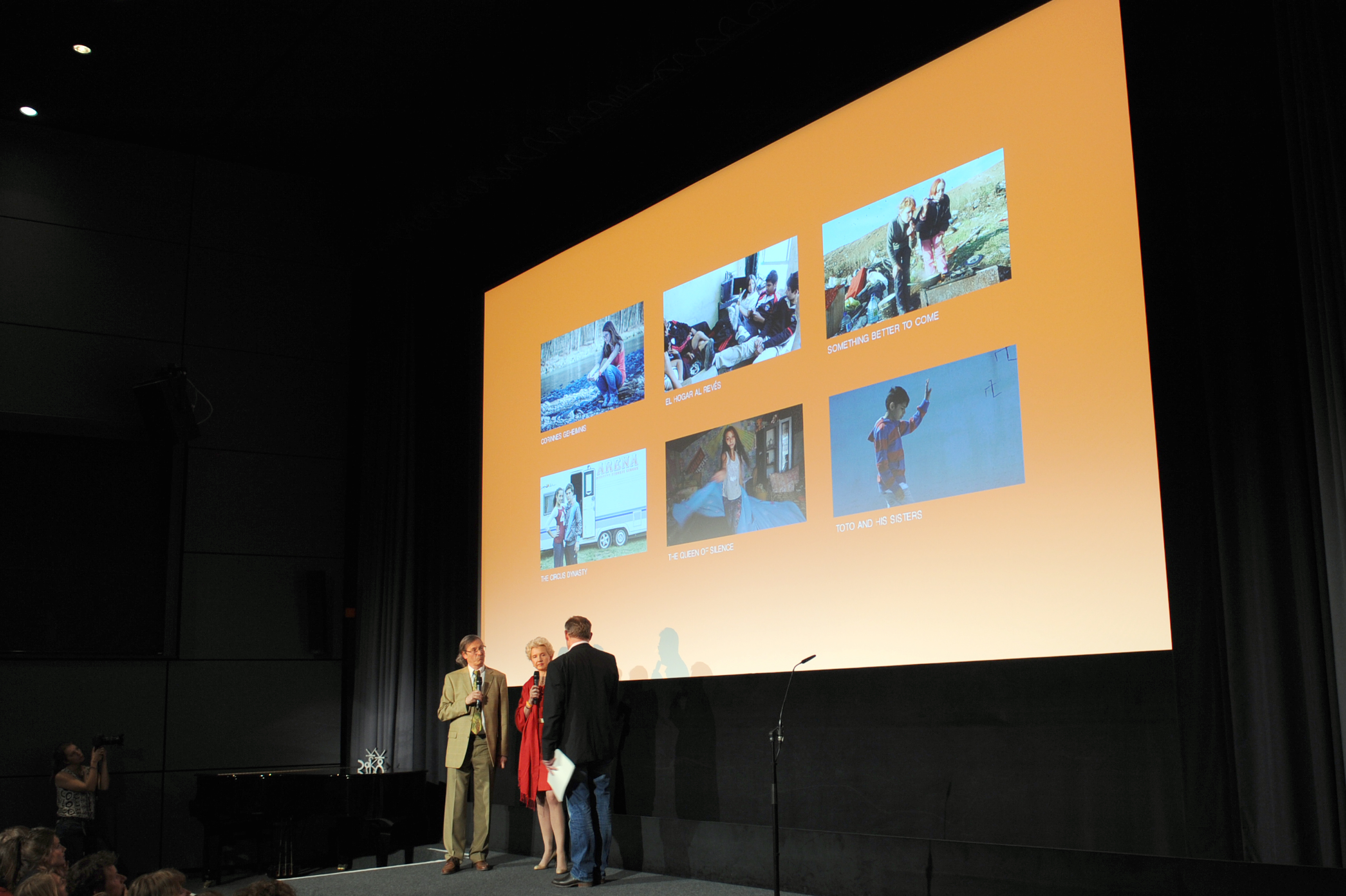 • v.l.n.r.: Peider Defilla (B.O.A. Videofilmkunst), Michaela Braun (SOS Kinderdörfer) und Regisseur Alexander Nanau (TOTO AND HIS SISTERS) / Copyright DOK.fest - Maren Willkomm