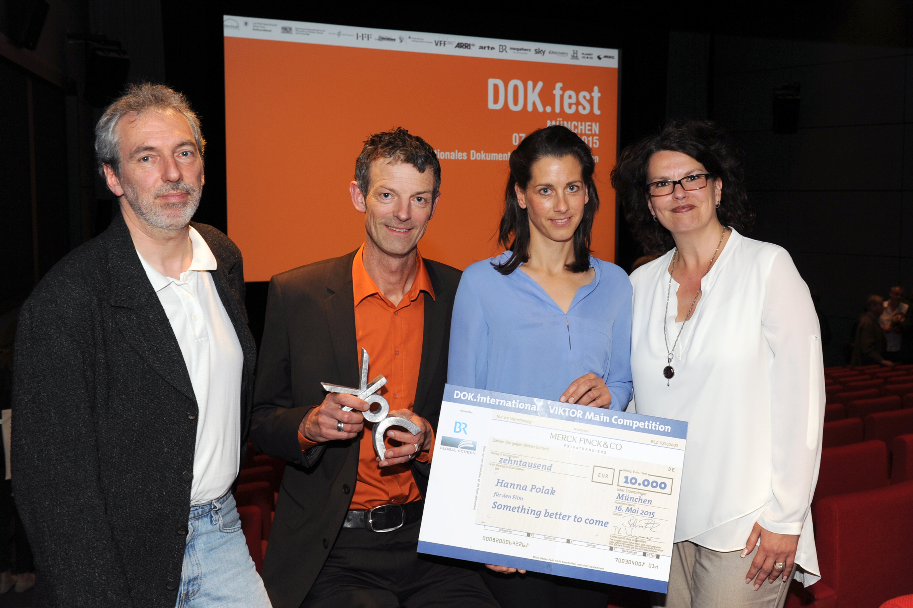 • VIKTOR Main Competition DOK.international 2015, v.l.n.r.: Andreas Ströhl (Juryvertreter), Festivalleiter Daniel Sponsel, Natalie Lambsdorff (BR) und Alexandra Heidrich (Global Screen) / Copyright DOK.fest - Maren Willkomm