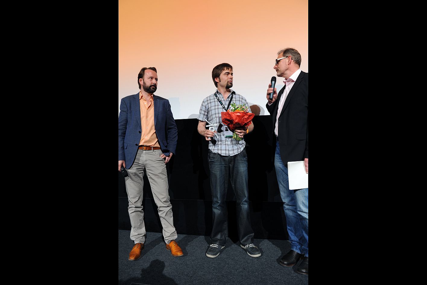 VIKTOR DOK.horizonte 2015, v.l.n.r: Festivalleiter Daniel Sponsel, Renate Grasse (Petra-Kelly-Stiftung) und Andreas Ströhl (Jury DOK.horizonte) / Copyright DOK.fest - Maren Willkomm