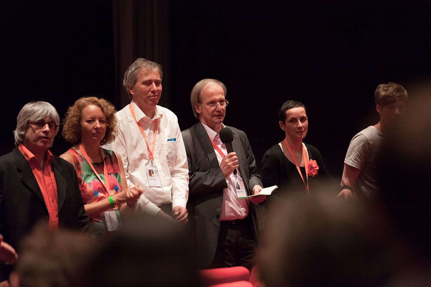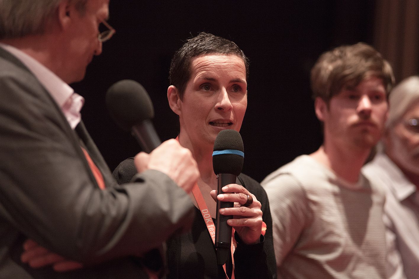 • Roland HH Biswurm, Jutta Krug (WDR), Produzent Christian Drewing (EIKON Südwest), Regisseur Wolfgang Landgraeber, Moderatorin Monika Haas / Copyright DOK.fest