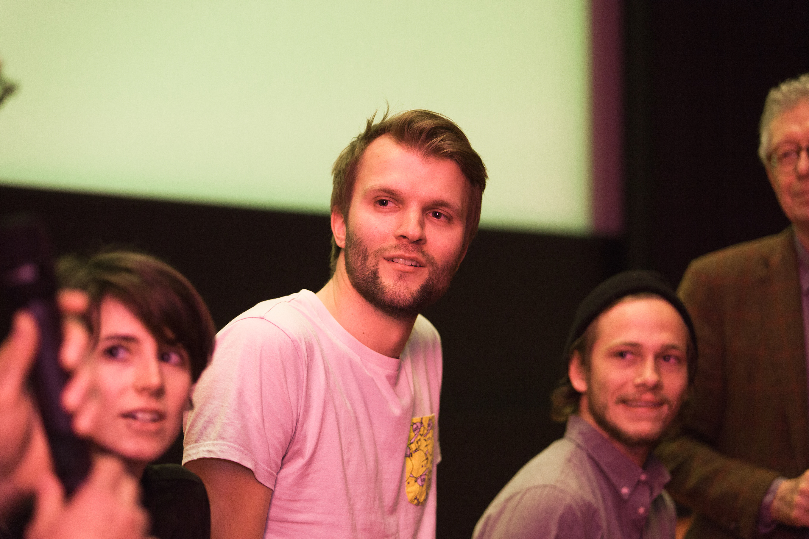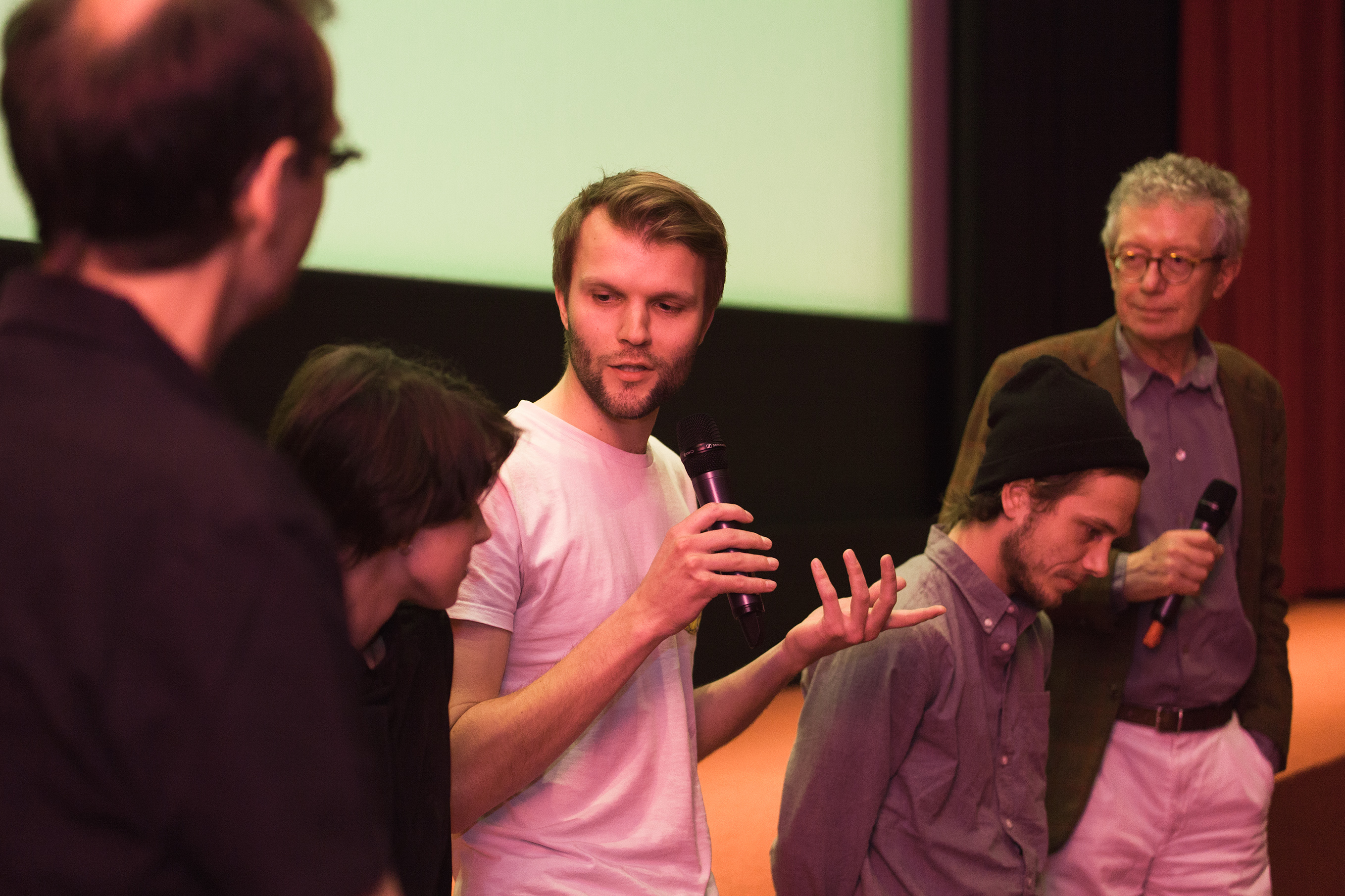 • (v.l.n.r.) Peter Linden, Sophie Krause, Moritz Müller-Preißer, Kameramann, Heiner Stadler / Copyright DOK.fest – Neven Allgeier