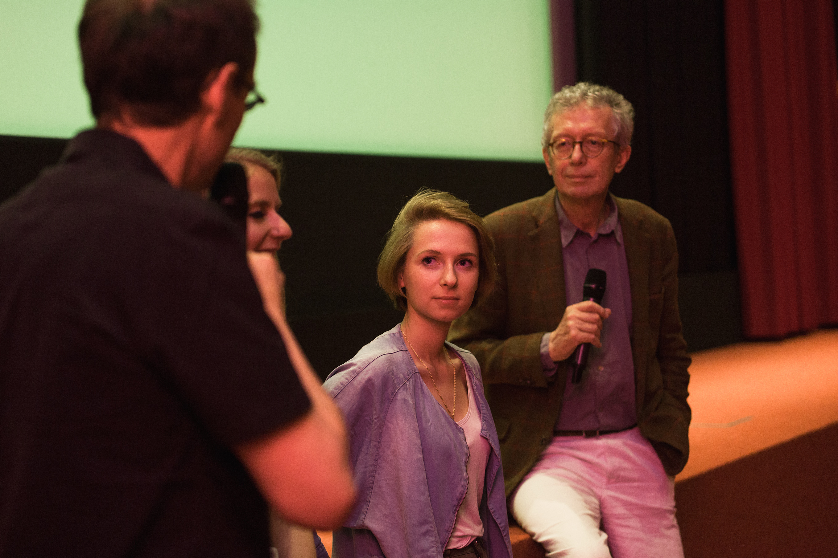 • (v.l.n.r.) Sophie Krause, Moritz Müller-Preißer + Kameramann, Heiner Stadler / Copyright DOK.fest – Neven Allgeier