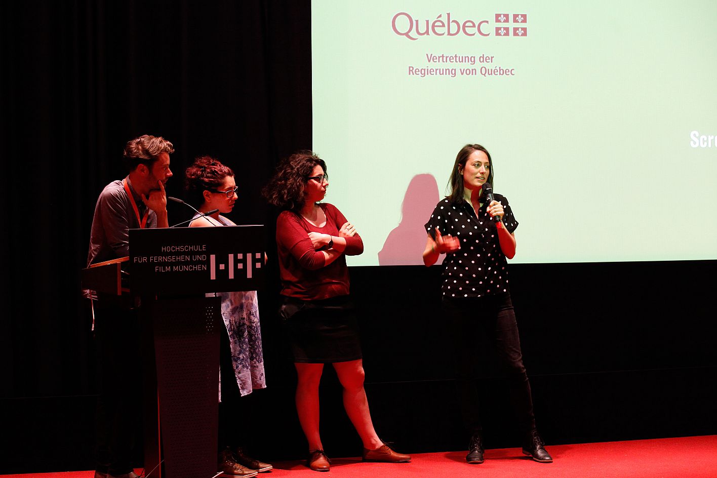 • Manuel Feifel (Vertretung der Regierung von Quebec), Annika Sehn (Regisseurin TIME TO DIE, MOTHERFUCKERS), Heiner Stadler (HFF) / Copyright DOK.fest - Sandra Ratkovic