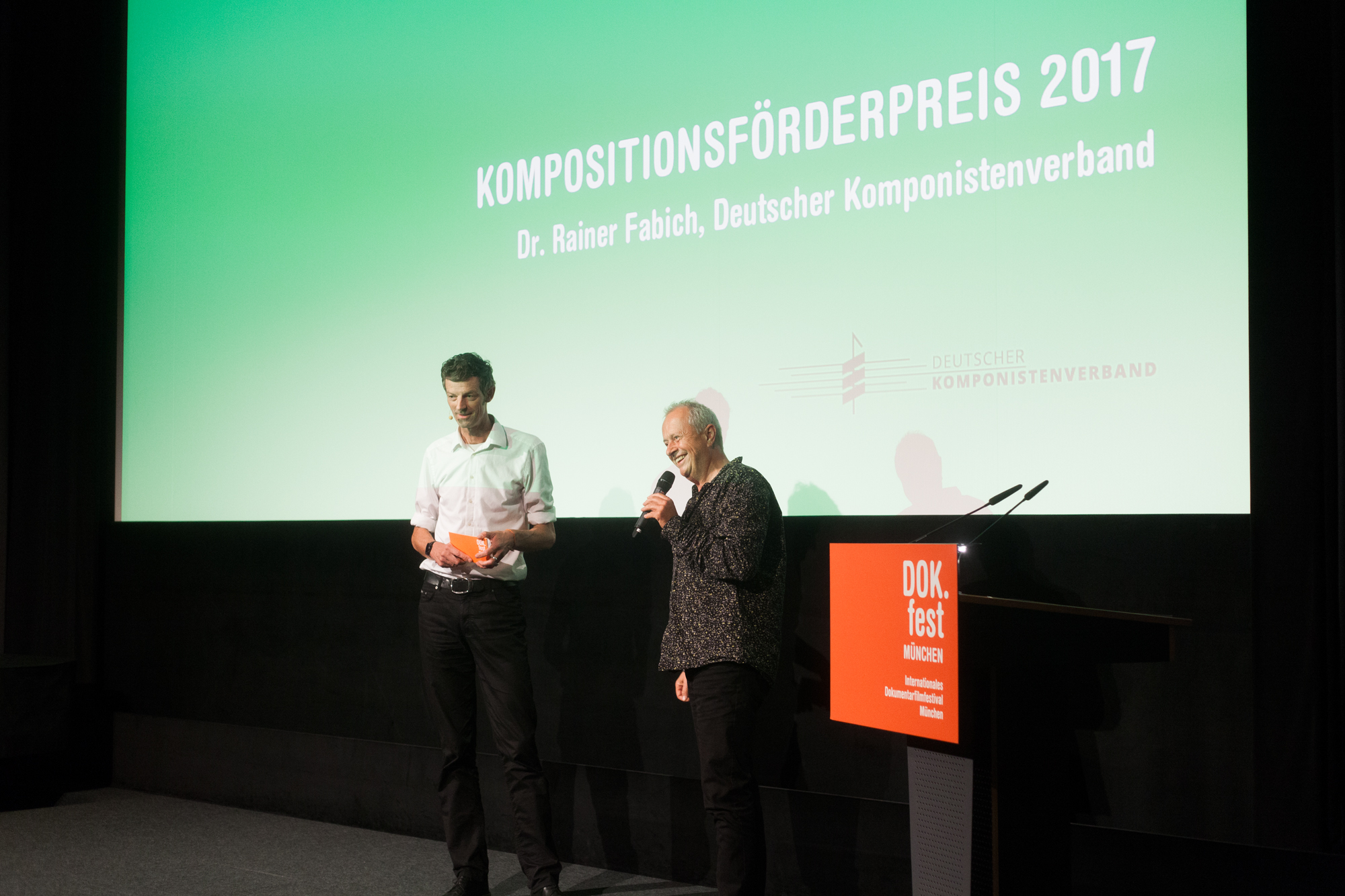 • Daniel Sponsel (Festivalleiter), Rainer Fabich (Deutscher Komponistenverband) / Copyright: DOK.fest München