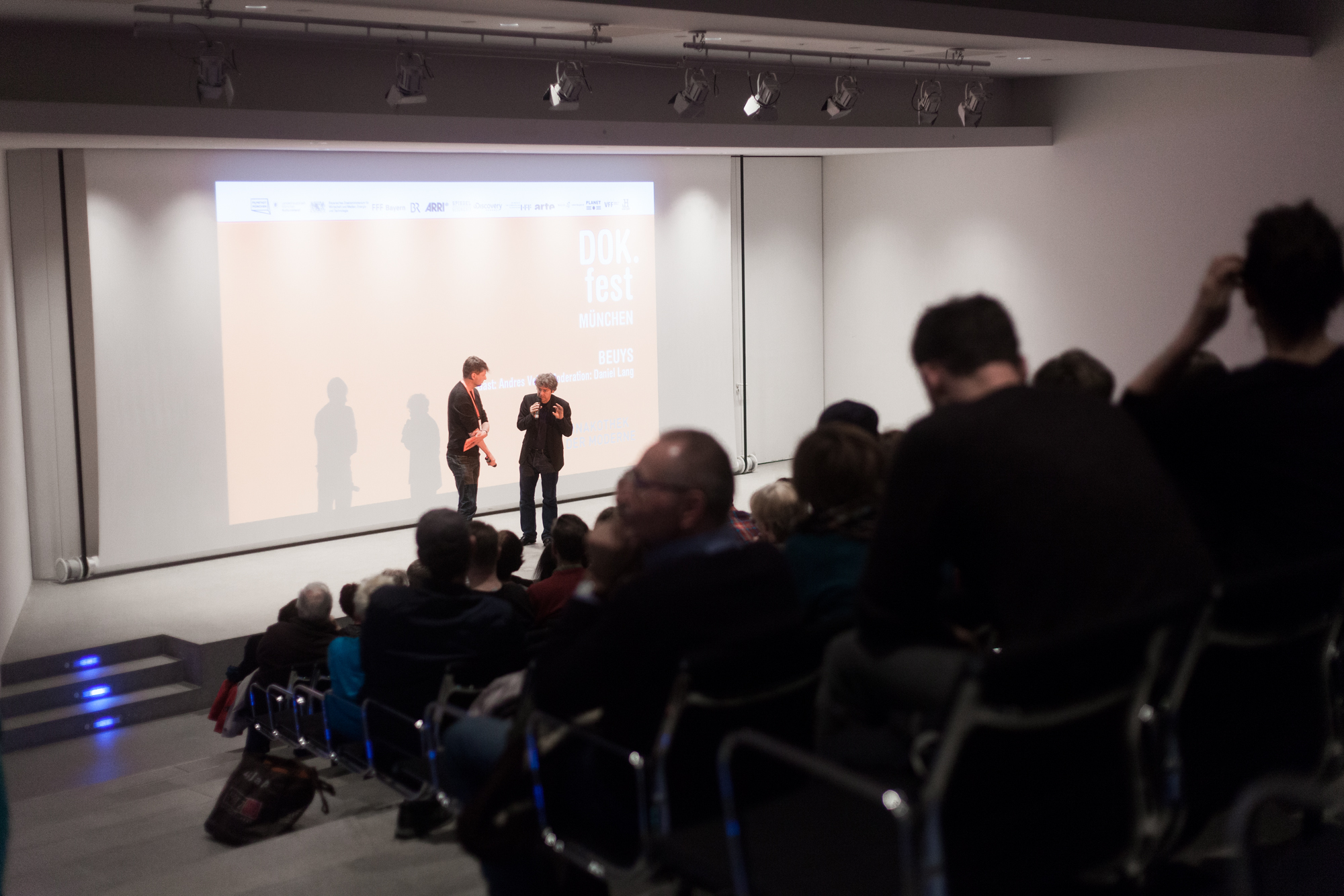 Daniel Lang (Moderator), Andres Veiel (Regisseur BEUYS) / Copyright: DOK.fest München