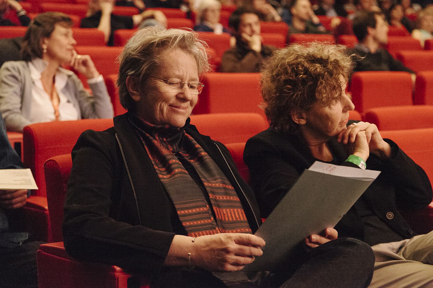 Prof. Karin Jurschick (HFF), Birgit Schulz (Bildersturm, Preisgewinnerin) / Verleihung VFF Dokumentarfilm-Produktionspreis und FairFilm Award Non-Fiction / Copyright DOK.fest München 2018