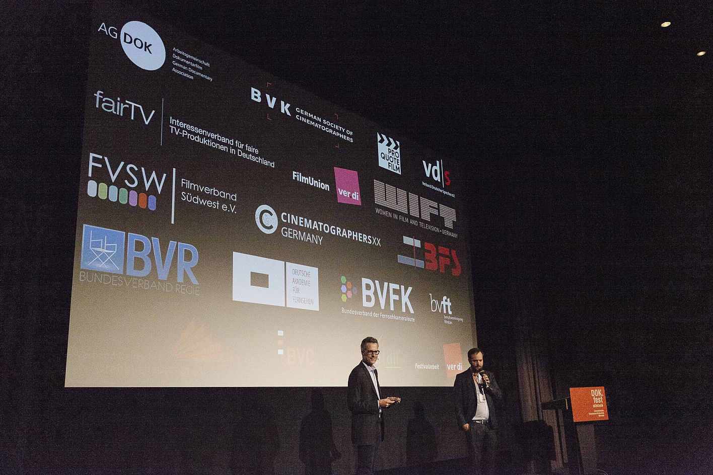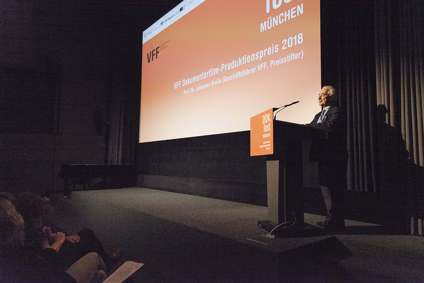 Prof. Dr. Johannes Kreile (FVV) und Daniel Sponsel (DOK.fest) / Verleihung VFF Dokumentarfilm-Produktionspreis und FairFilm Award Non-Fiction / Copyright DOK.fest München 2018