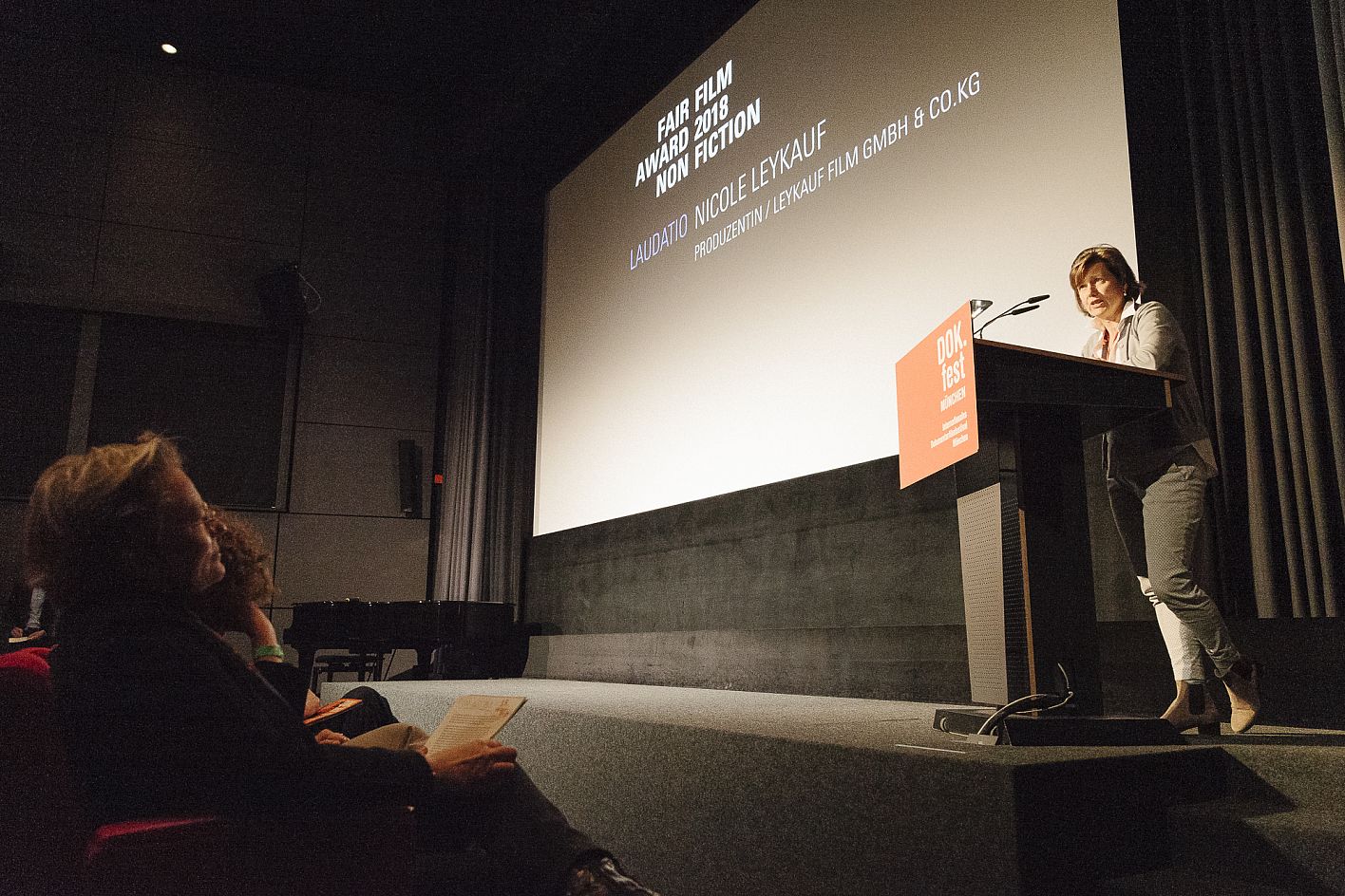 Nicole Leykauf (Leykauf Film) /Verleihung VFF Dokumentarfilm-Produktionspreis und FairFilm Award Non-Fiction / Copyright DOK.fest München 2018