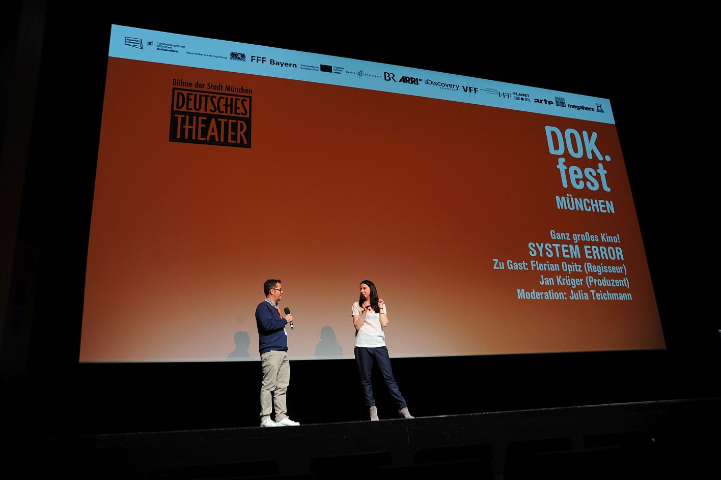 Florian Opitz (Regisseur SYSTEM ERROR), Julia Teichmann (Moderatorin, DOK.fest München) / Copyright: DOK.fest München