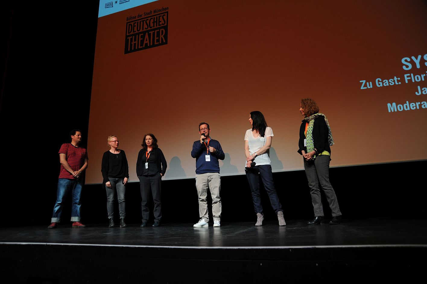 Frank Müller (Editor), Christiane von Hahn (Redakteurin BR), Sabine Rollberg (Redakteurin WDR/ARTE), Florian Opitz (Regisseur), Julia Teichmann (Moderatorin), Jutta Krug (Redakteurin WDR) / Copyright: DOK.fest München