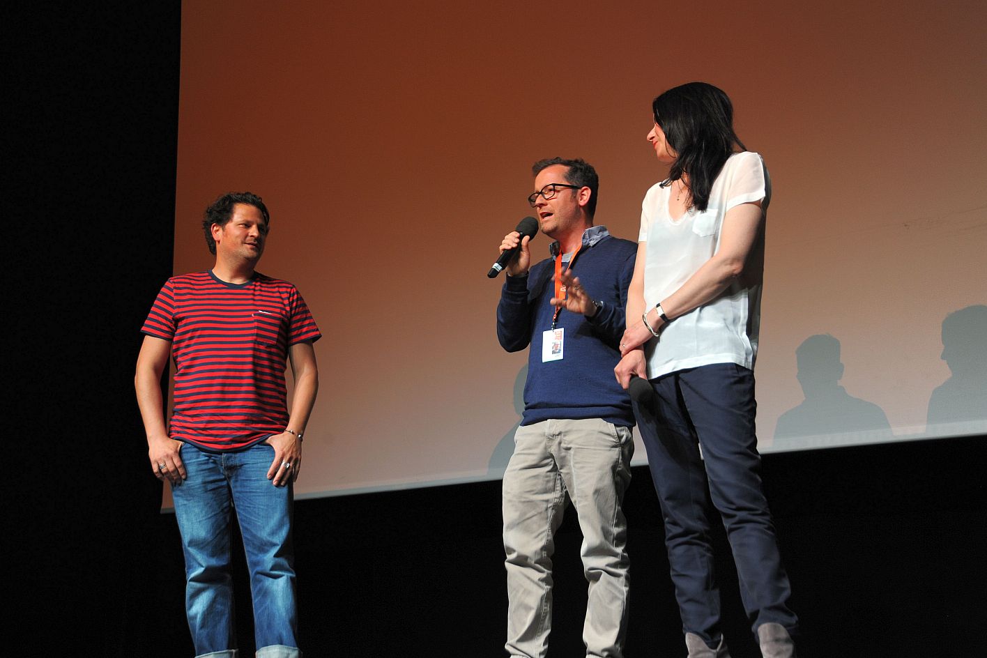 Jan Krüger (Produzent SYSTEM ERROR), Florian Opitz (Regisseur SYSTEM ERROR), Julia Teichmann (Moderatorin, DOK.fest München) / Copyright: DOK.fest München
