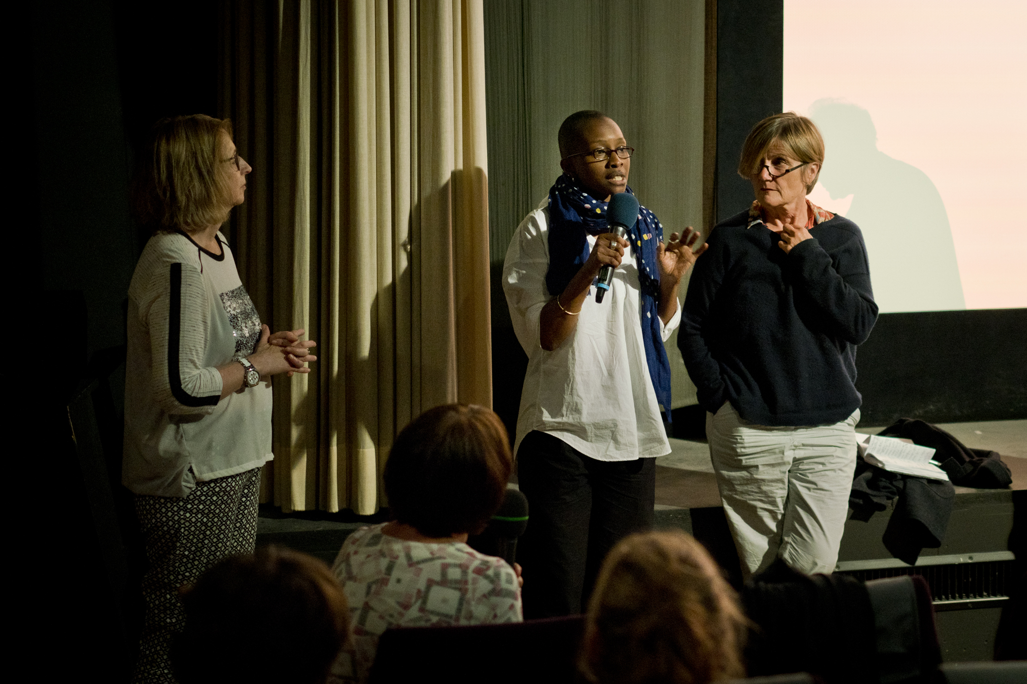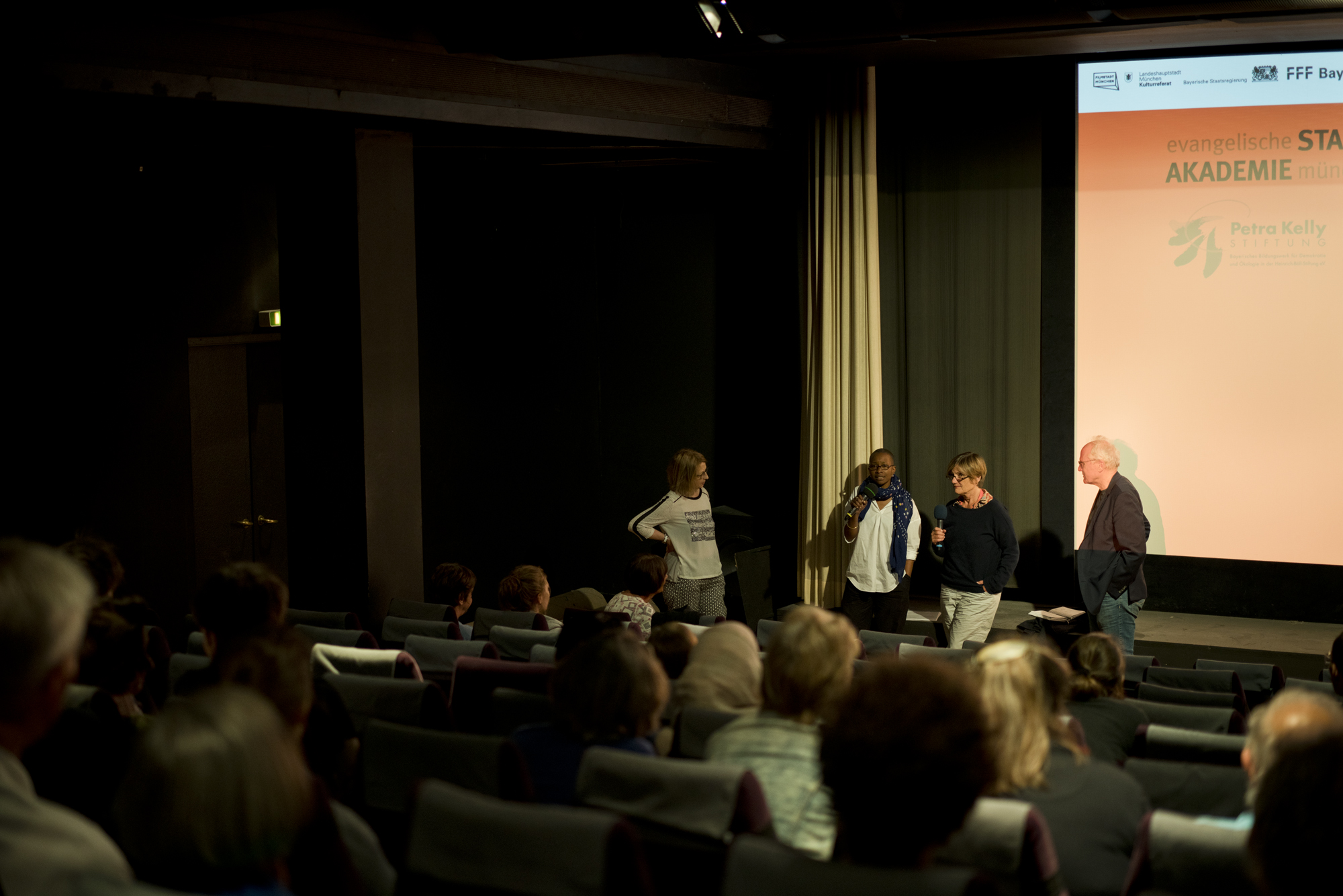 • Prof. Dr. Robert Kappel (Inst. f. Afrikanistik Universität Leipzig), Hawa Essuman (Regie), Jutta Höcht-Stöhr (Evangelische Stadtakademie) / Copyright DOK.fest München