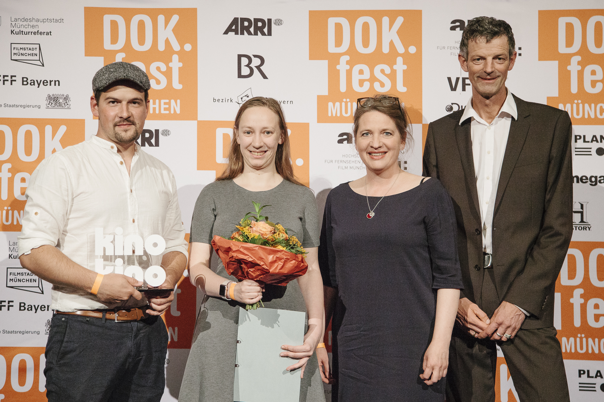 Johannes List (Preisträger BR kinokino Publikumspreis), Luzie Lohmeyer (if... productions), Antje Harries (Bayerischer Rundfunk), Daniel Sponsel (Festivalleiter) / Copyright: DOK.fest München