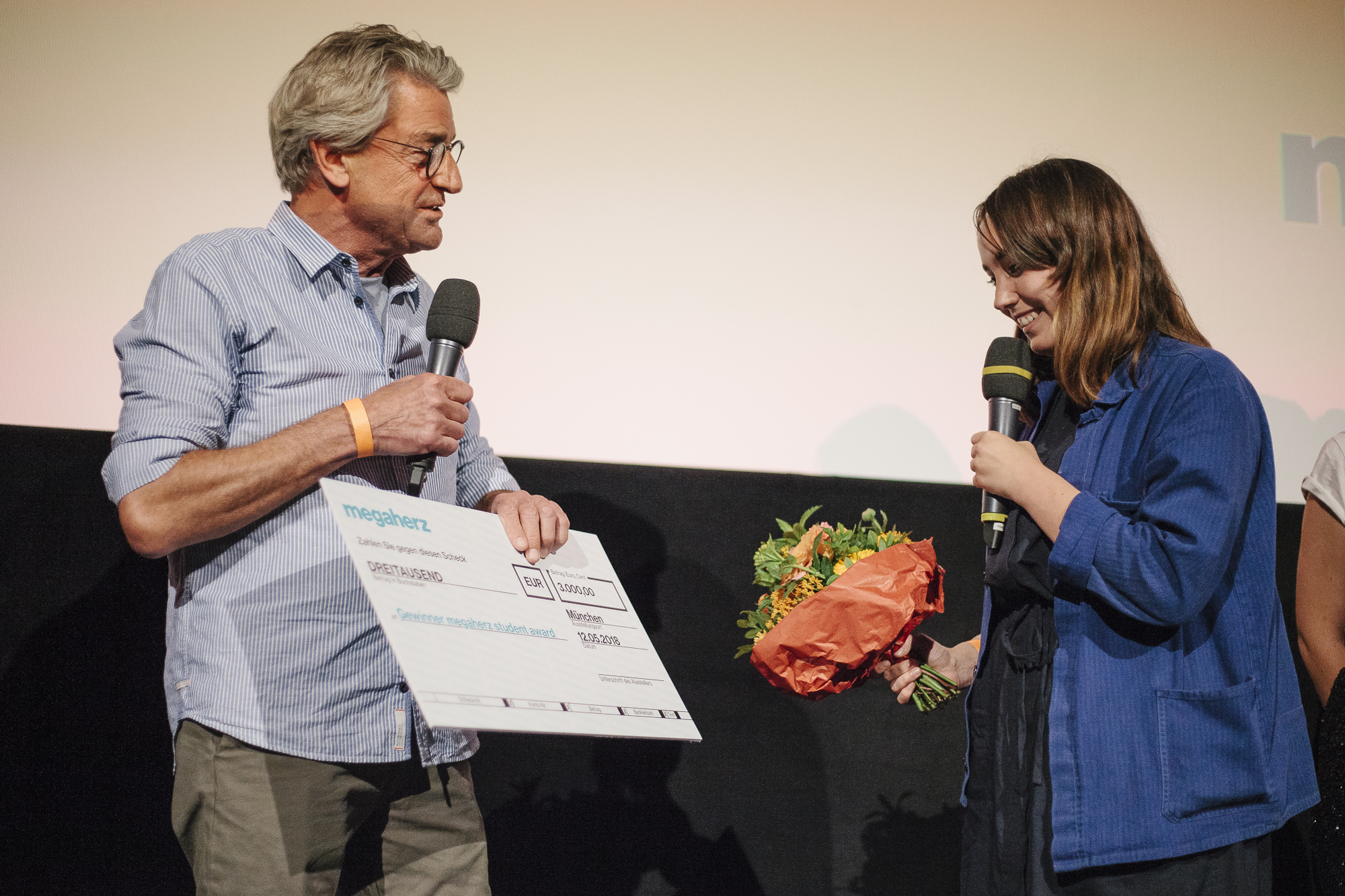 Franz Xaver Gernstl (megaherz, Preisträger), Leni Gruber (Produzentin SAND UND BLUT) / Copyright: DOK.fest München