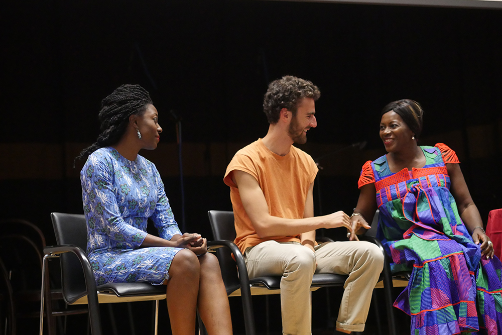 Cyrielle Raingou (Filmemacherin und Stipendiatin der DOK.network Africa Residency aus Kamerun), Gabriel Darin (DOK.fest), Angèle Etoundi Essamba (Fotografin aus Kamerun/Niederlande)