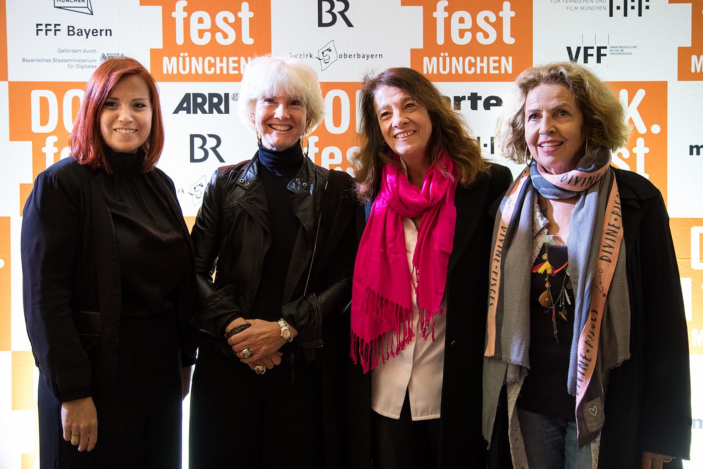 Eröffnung DOK.fest München / Adele Kohout (Stellv. Festivalleitung DOK.fest München), Michaela Braun (Stellvertretende Vorsitzende des Aufsichtsrats SOS- Kinderdörfer weltweit), Christine Kehrer (SOS-Kinderdörfer weltweit), Michaela May (Jurorin), Copyright: DOK.fest München