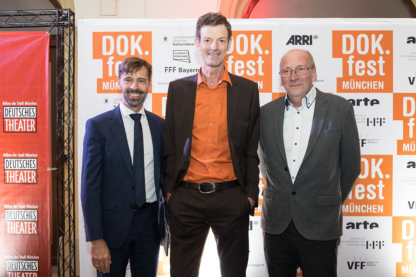 Eröffnung DOK.fest München / Dr. Hans Michael Strepp (Amtschef, Bayer. Staatsministerium für Digitales), Daniel Sponsel (Festivalleiter DOK.fest München), Dr. Hans-Georg Küppers (Kulturreferent der Landeshauptstadt München), Copyright: DOK.fest München