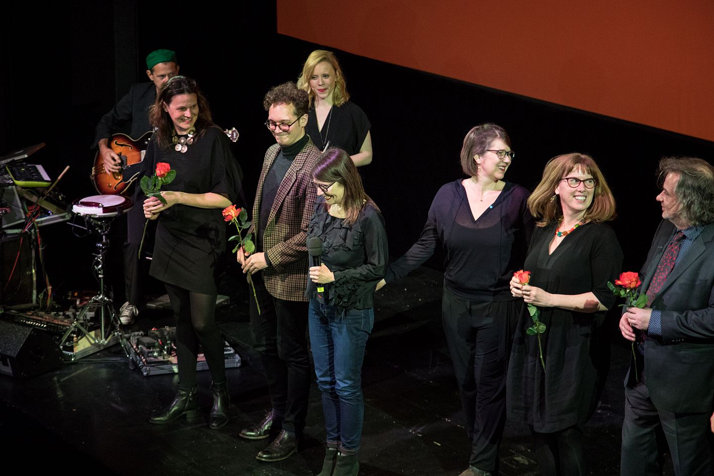 Eröffnung DOK.fest München / Janie Wray (Protagonistin), Mirjam Leuze (Regisseurin THE WHALE AND THE RAVEN), Sandra Brandl (Editorin THE WHALE AND THE RAVEN), Daniel Sponsel (Festivalleiter DOK.fest München)