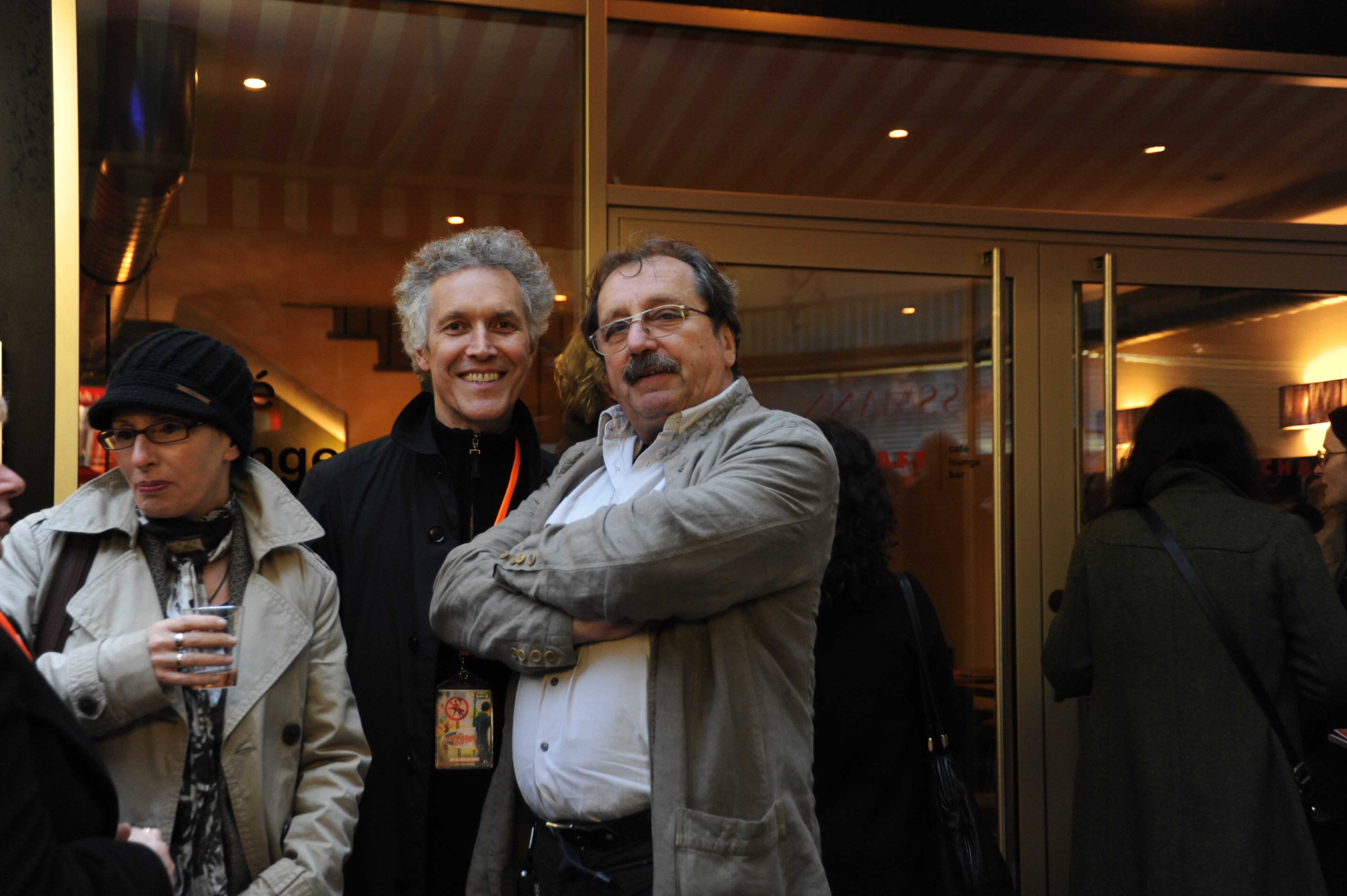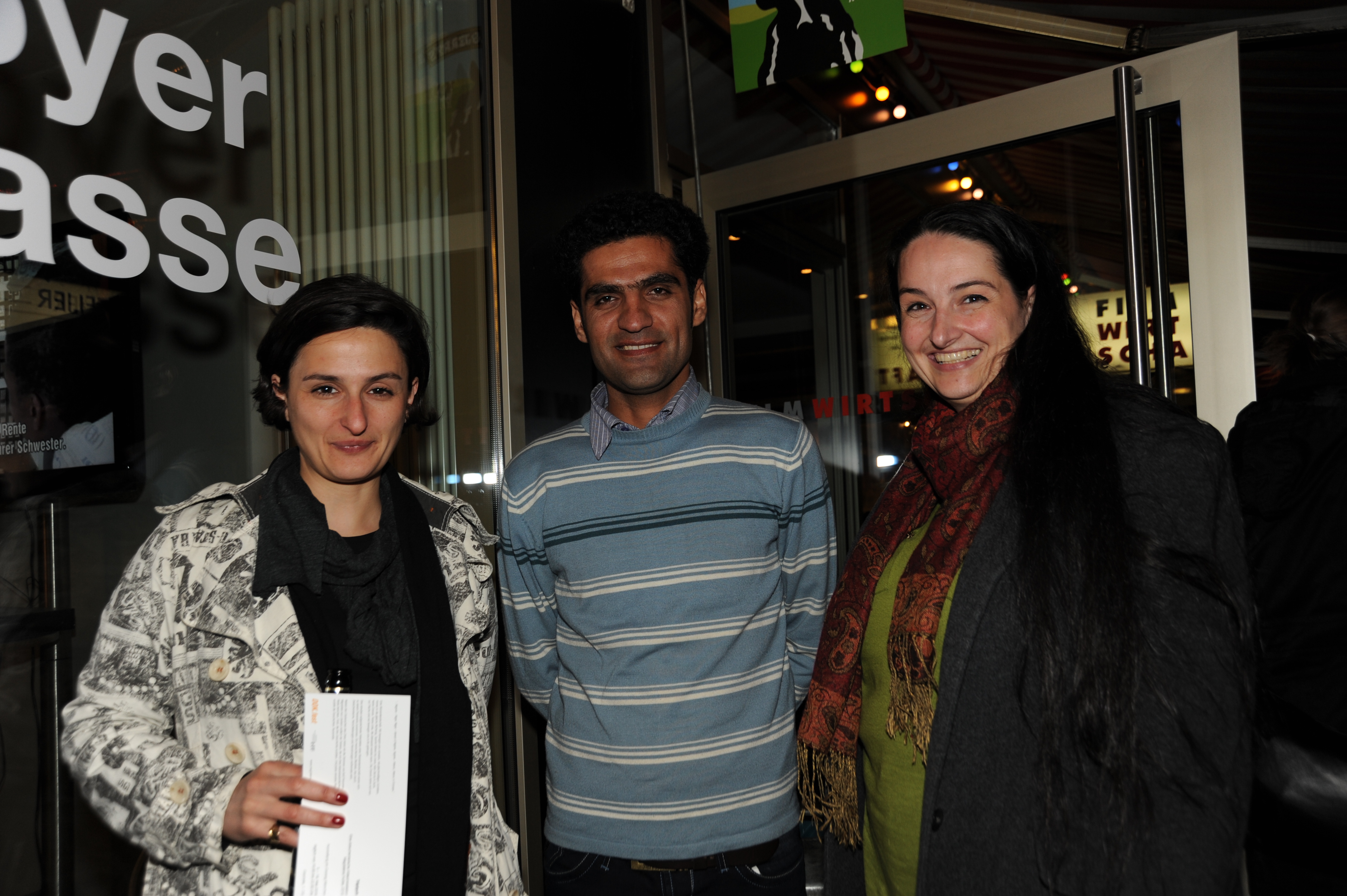 • v.l.n.r.: Fatima Geza Abdollahyan (Regisseurin), Regisseur Mahmood Rahmani (MOLF E GAND) und Silvia Bauer (DOK.fest) / Copyright DOK.fest - Maren Bornemann