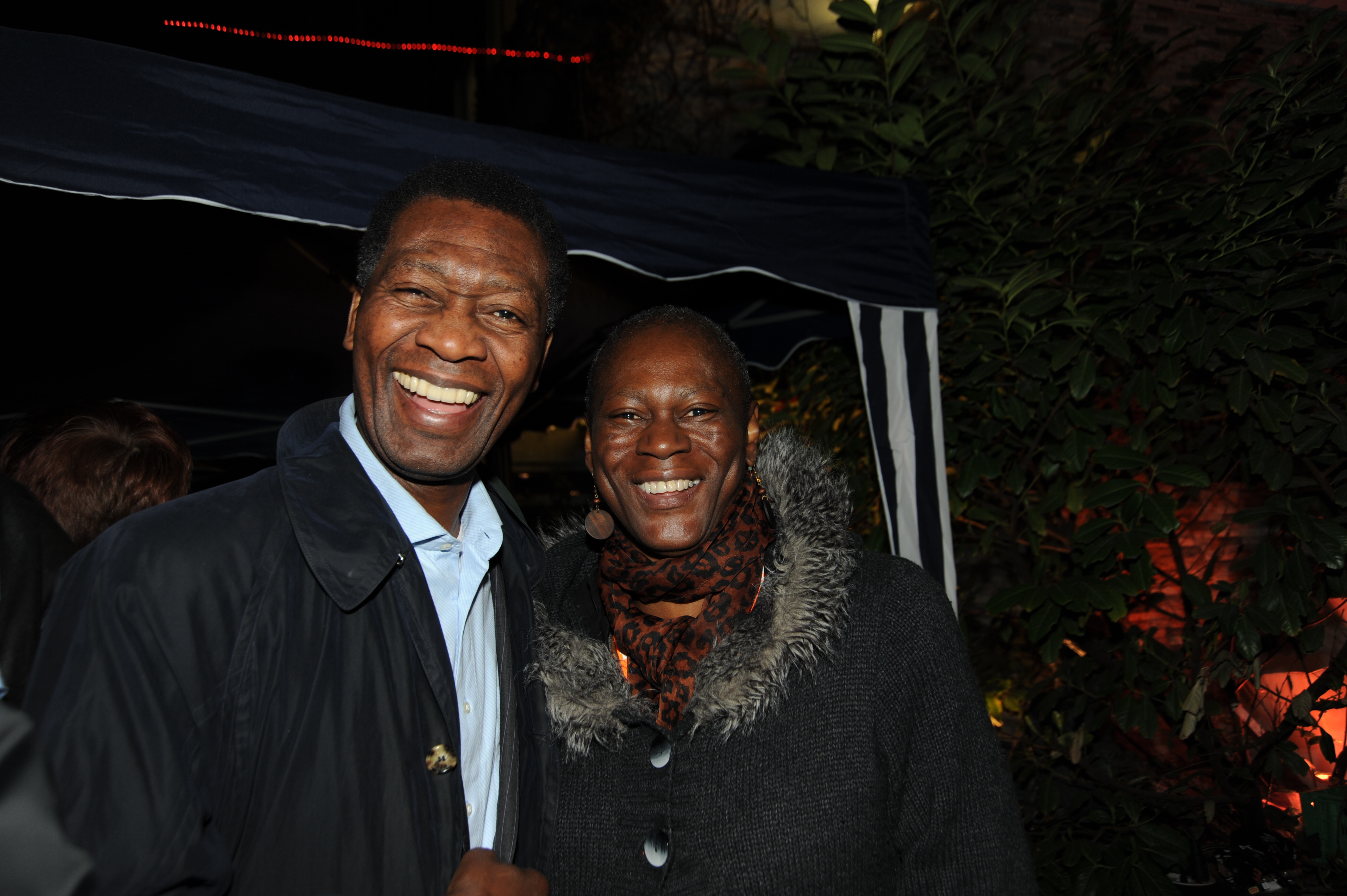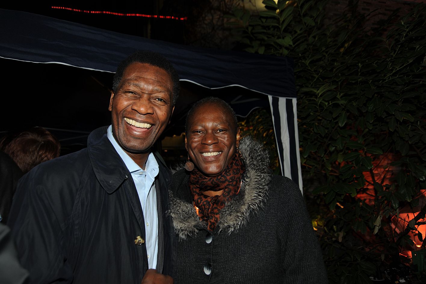 • C. Kalume Wa Mukadí Dah Vígnon (Vertreter des Königshauses von Abomey / Republik Benin, li.) und Regisseurin Monique Mbeka Phoba (ENTRE LA COUPE ET L'ELECTION, re.) / Copyright DOK.fest - Maren Bornemann